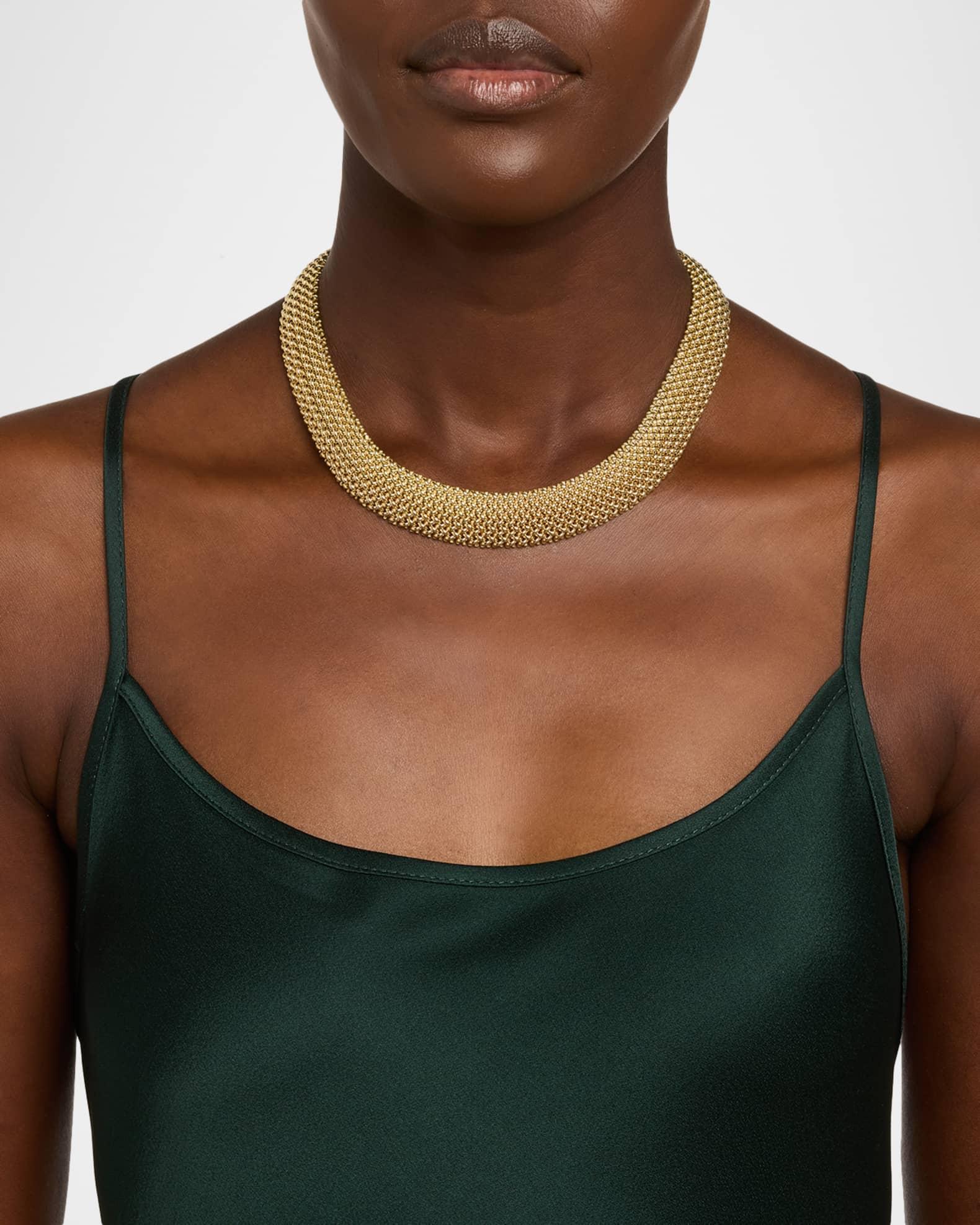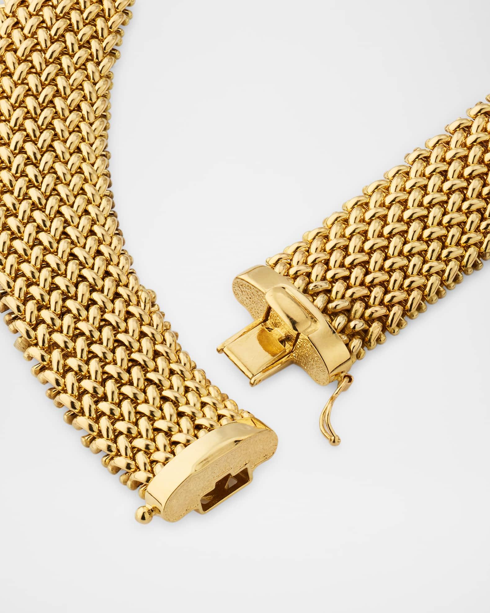 Alberto Milani transforms Italian gold links into a thick wheat chain for this Via Ornato Chicco necklace. Approx. 17" length x 0.7" width (18mm) Polished 18-karat yellow gold Push-lock closure Made in Italy