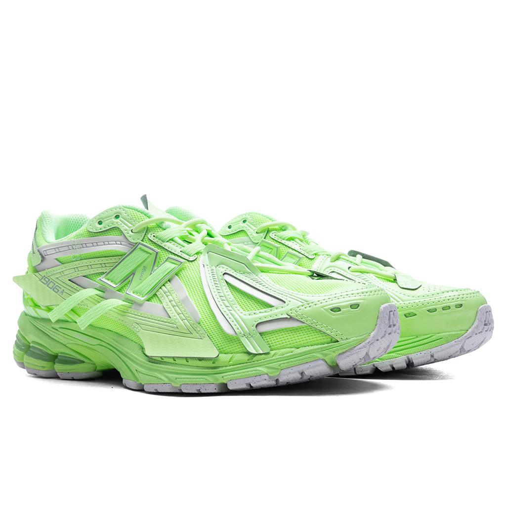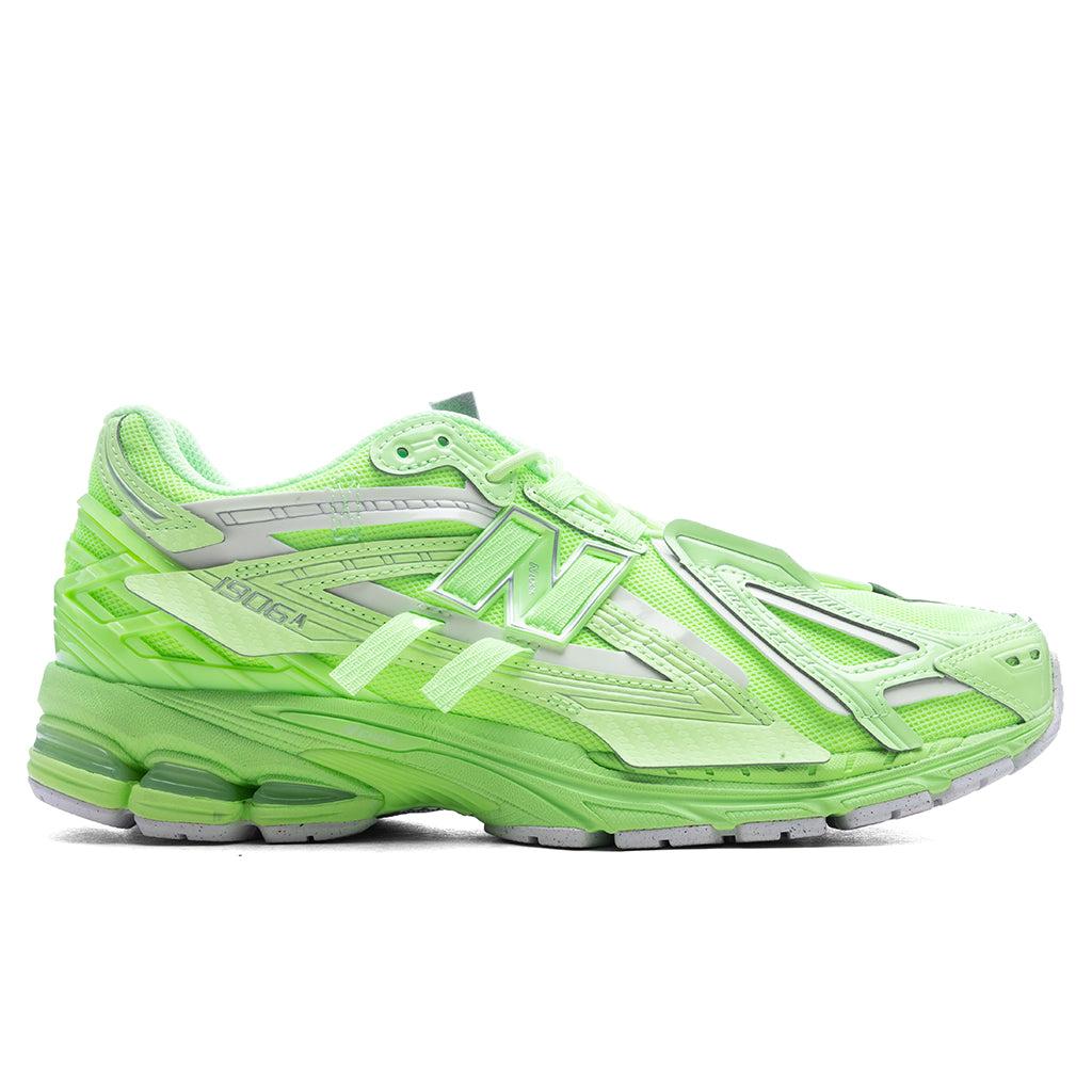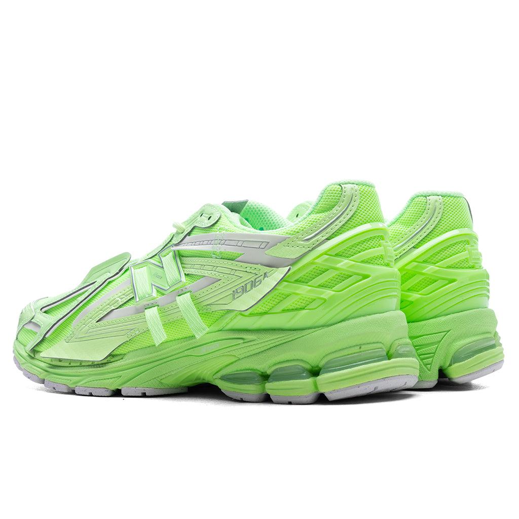 The New Balance 1906A in Mint Flash/Silver Metallic/White delivers a dynamic blend of style and performance. A breathable mesh upper pairs with synthetic leather overlays for durability, while a molded heel cage enhances support. The ACTEVA LITE midsole and ABZORB SBS heel pods provide lightweight cushioning and shock absorption. Finished with a Stability Web and a durable rubber outsole, this sneaker offers both stability and traction, making it a versatile choice for everyday wear. Mesh upper Synthetic leather overlays Molded cage at the heel ACTEVA LITE midsole ABZORB SBS heel pods Rubber outsole Stability Web All sizes are listed in U.S. Men's sizing unless stated otherwise Style No: U1906AF
