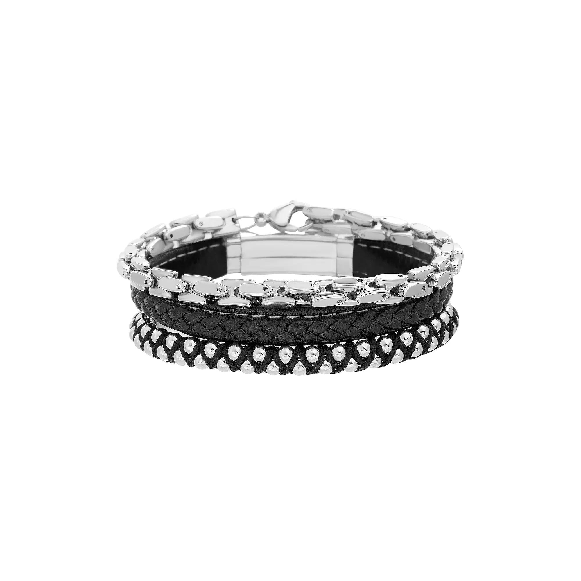 Embrace your individuality with this 1913 bracelet set for men. It allows you to you mix and match these versatile pieces, or wear them together for a bold, layered look. Click on this JEWELRY & WATCHES GUIDE to learn about fit, styles, materials and more! Embrace your individuality with this 1913 bracelet set for men. It allows you to you mix and match these versatile pieces, or wear them together for a bold, layered look. Click on this JEWELRY & WATCHES GUIDE to learn about fit, styles, materials and more! FEATURES Includes: 1 braided leather bracelet, 1 leather bracelet with stainless steel beads, 1 stainless steel heavy link bracelet Length: 8.5 in. Clasp: adjustable, lobster-claw Nickel free Metal: stainless steel Finish: polished Packaging: boxed Size: 8.5. Color: Grey. Gender: male. Age Group: adult.