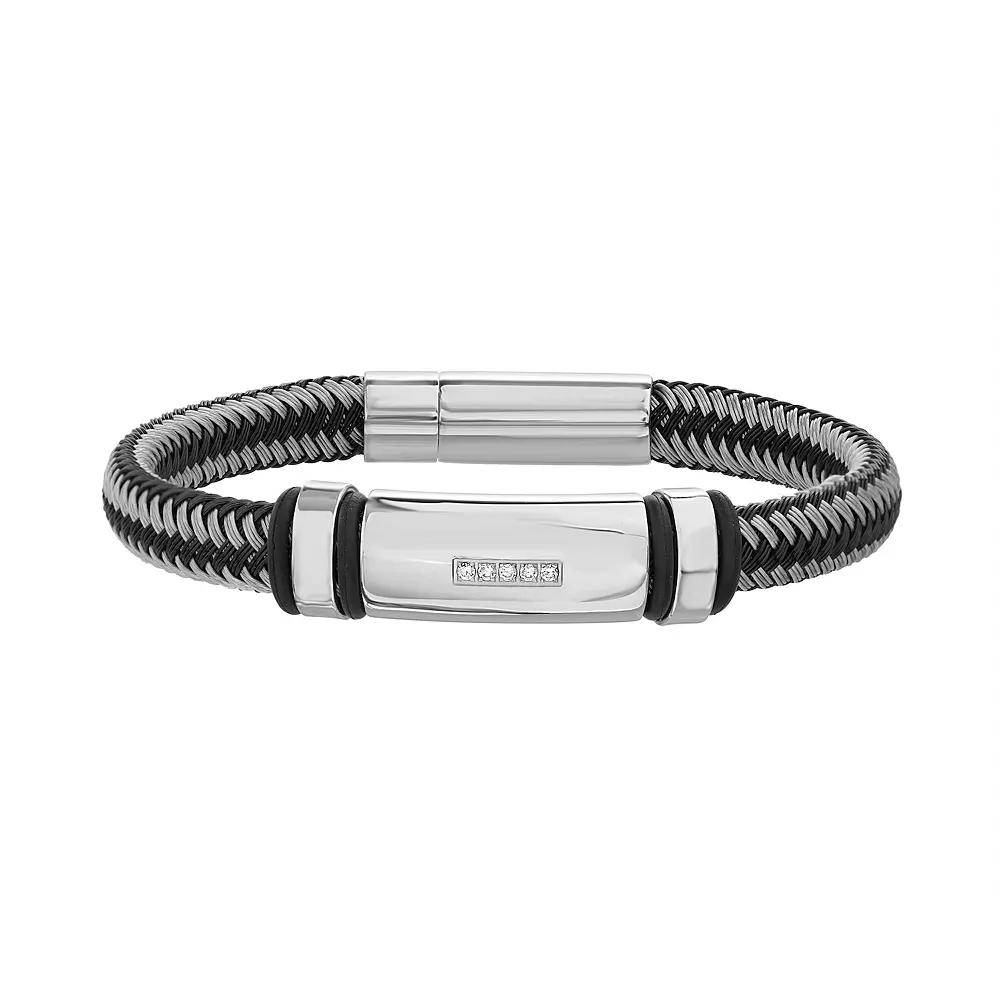 Add a cool new element to your daily look with this two tone stainless steel ID bracelet. Add a cool new element to your daily look with this two tone stainless steel ID bracelet. Clasp: push button Metal: stainless steel Plating: black ion-plated Packaging: boxed Finish: polished Additional details: crystal accents Size: 9". Color: Multicolor. Gender: male. Age Group: adult.