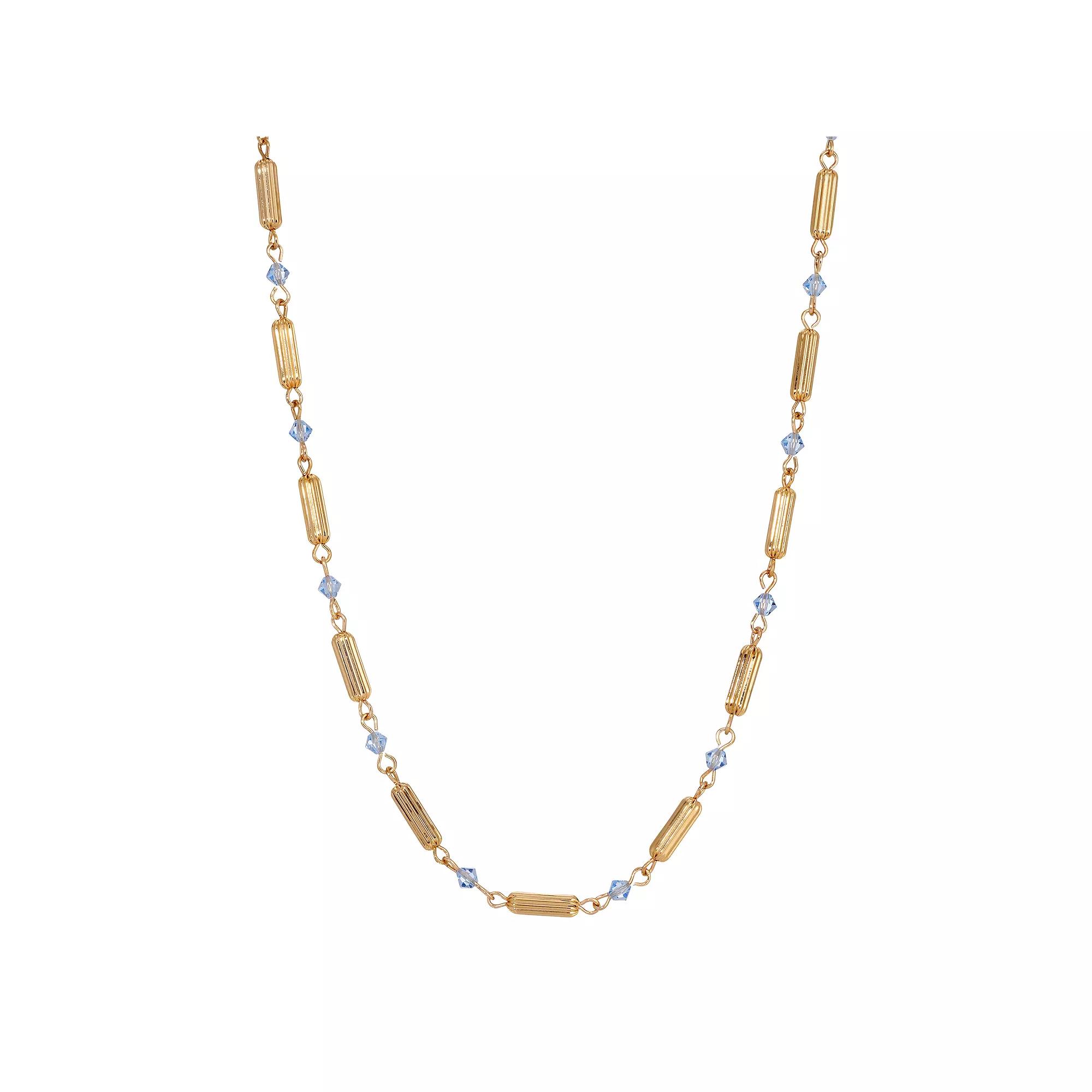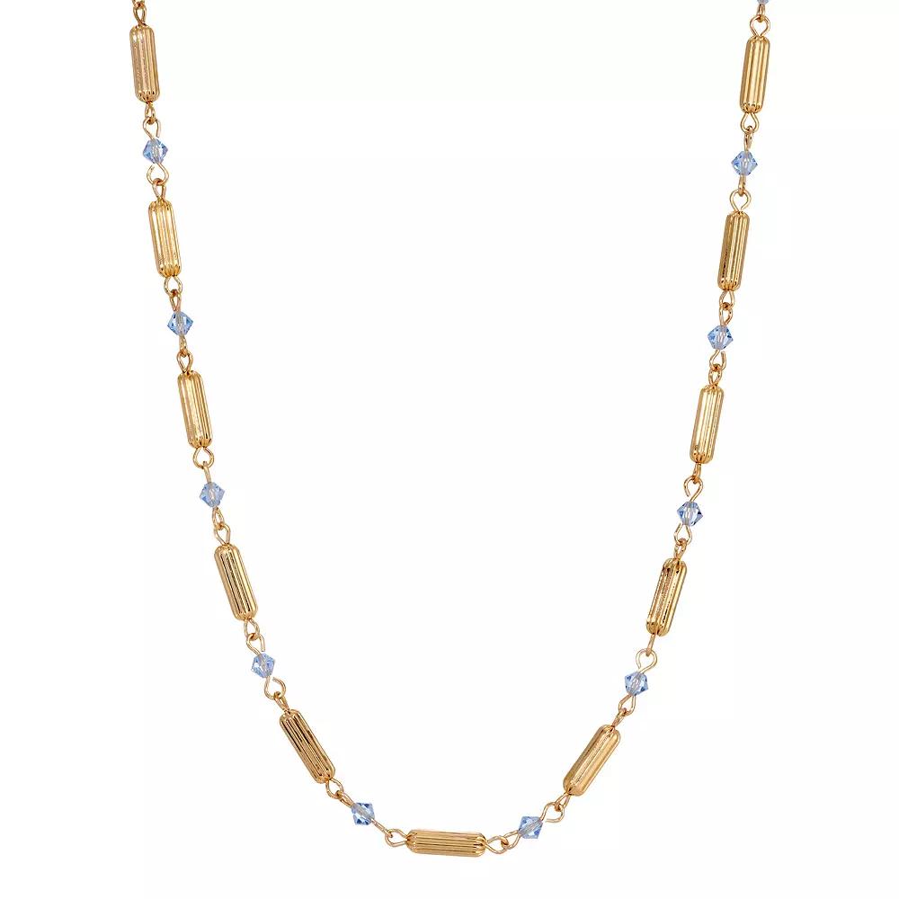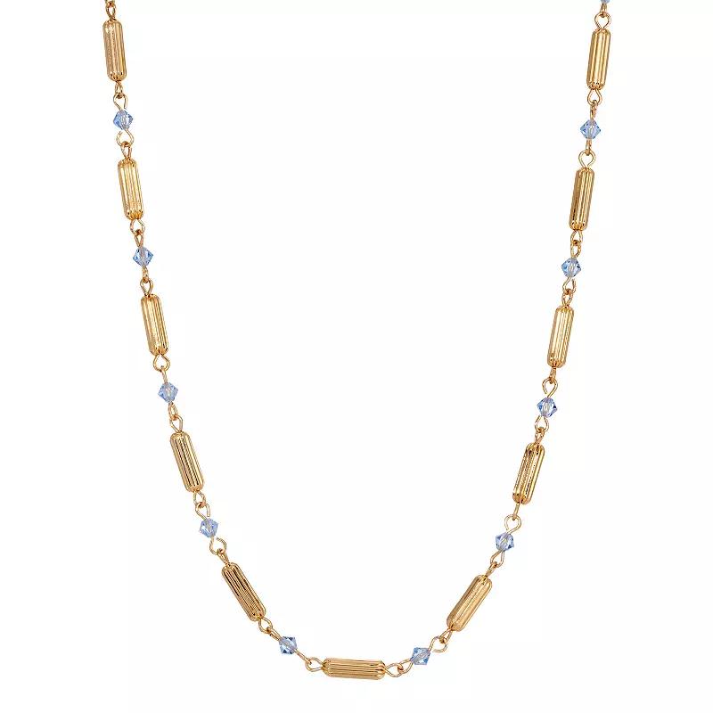 This necklace features cylindrical beads dipped in 14k gold, interspersed with crystal glass lantern beads. It offers soft hues of light rose pink or light blue for a subtle splash of color. Click on this JEWELRY & WATCHES GUIDE to learn about fit, styles, materials and more! This necklace features cylindrical beads dipped in 14k gold, interspersed with crystal glass lantern beads. It offers soft hues of light rose pink or light blue for a subtle splash of color. Click on this JEWELRY & WATCHES GUIDE to learn about fit, styles, materials and more! FEATURES Chain length: 15 in. + 3-in. extender Clasp: lobster-claw Nickel safe Metal: alloy Material: crystal Plating: gold tone Finish: polished Size: One Size. Gender: female. Age Group: adult.