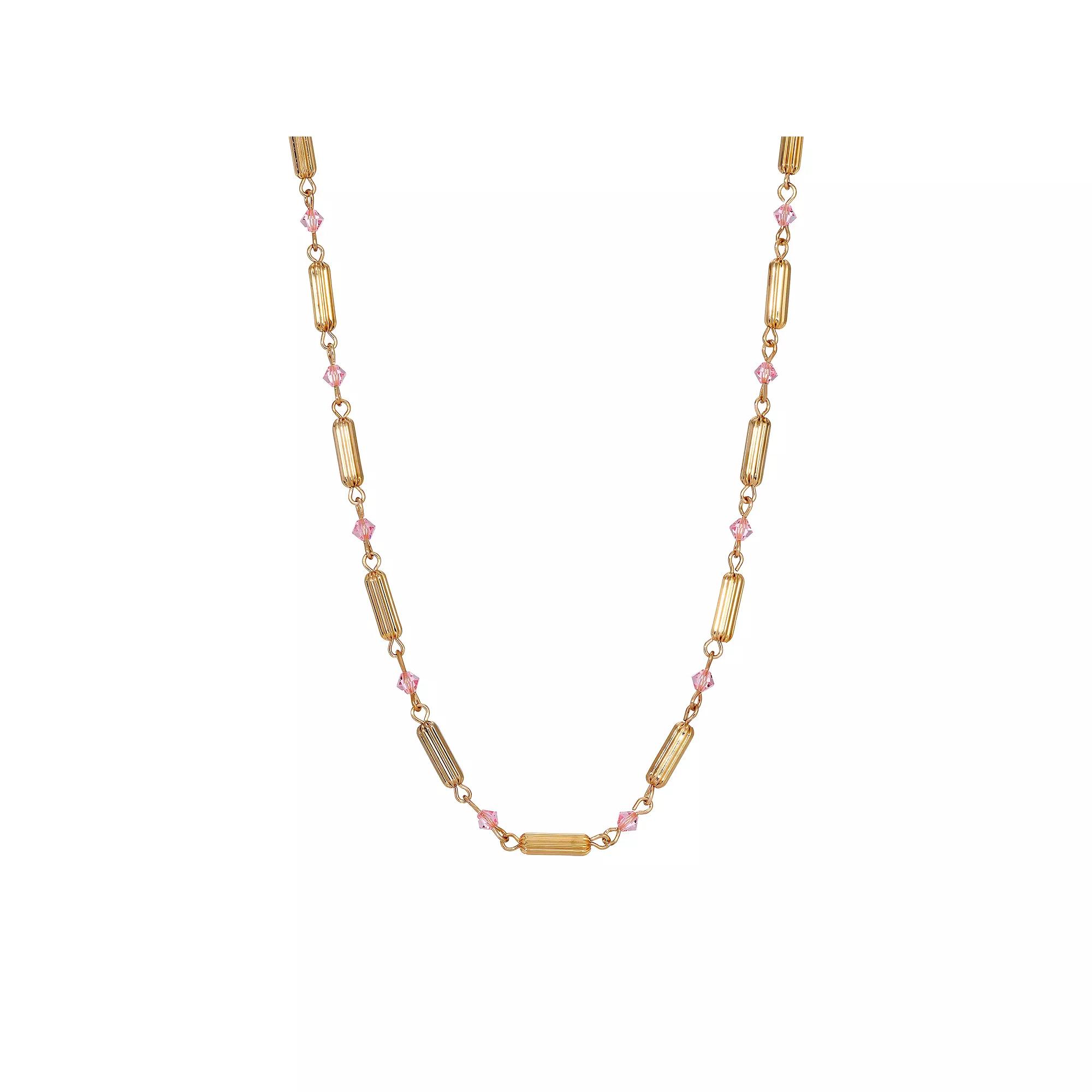 This necklace features cylindrical beads dipped in 14k gold, interspersed with crystal glass lantern beads. It offers soft hues of light rose pink or light blue for a subtle splash of color. Click on this JEWELRY & WATCHES GUIDE to learn about fit, styles, materials and more! This necklace features cylindrical beads dipped in 14k gold, interspersed with crystal glass lantern beads. It offers soft hues of light rose pink or light blue for a subtle splash of color. Click on this JEWELRY & WATCHES GUIDE to learn about fit, styles, materials and more! FEATURES Chain length: 15 in. + 3-in. extender Clasp: lobster-claw Nickel safe Metal: alloy Material: crystal Plating: gold tone Finish: polished Size: One Size. Gender: female. Age Group: adult.