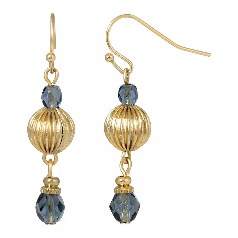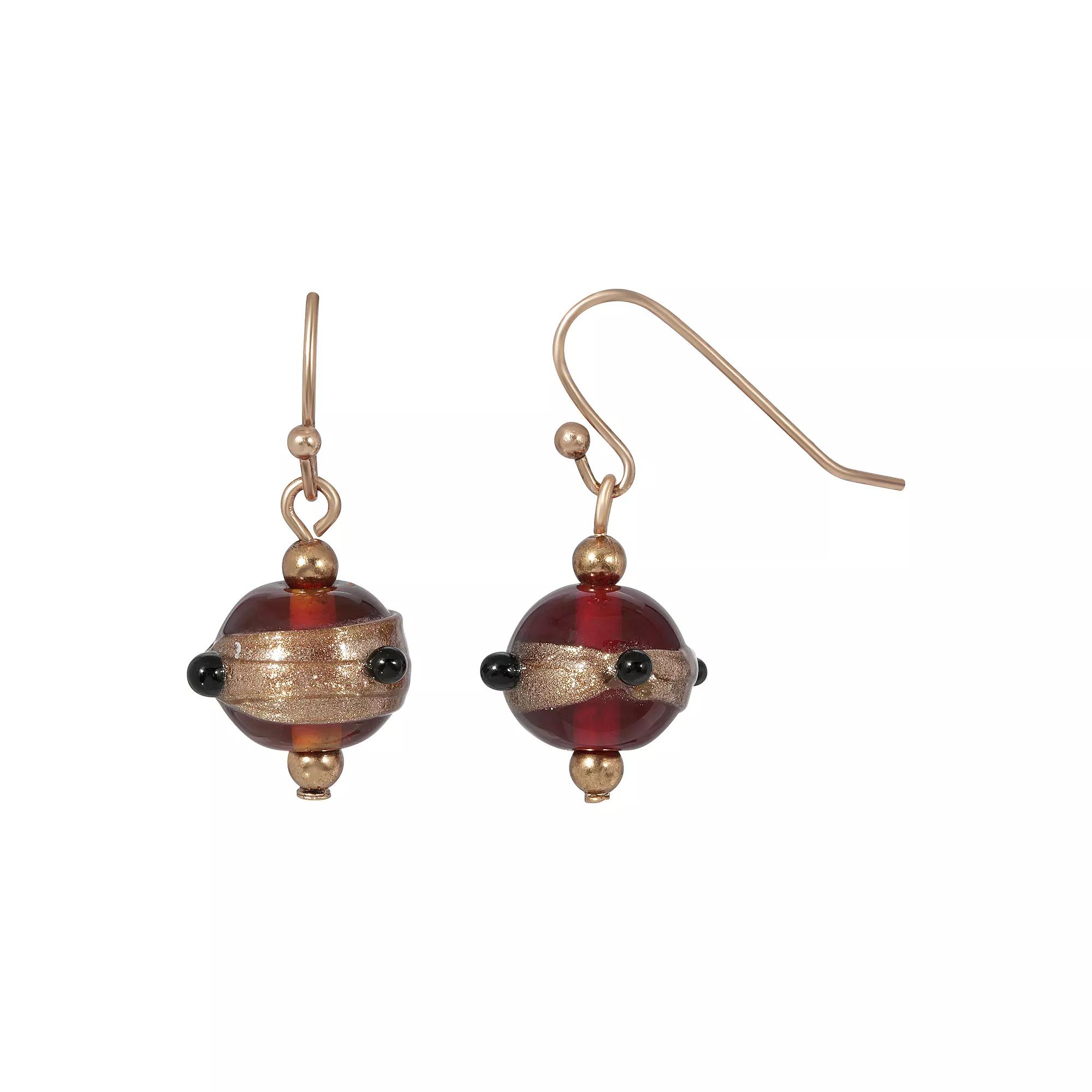 These vintage-inspired copper tone earrings from 1928 feature a fancy brown round glass bead with a sparkly, black dot-accented wrap. These vintage-inspired copper tone earrings from 1928 feature a fancy brown round glass bead with a sparkly, black dot-accented wrap. Metal: alloy Backings: fishhook Plating: copper tone Finish: polished Material: glass Length: 1 in. Not appropriate for children 14 years old and younger. Size: One Size. Gender: female. Age Group: adult.