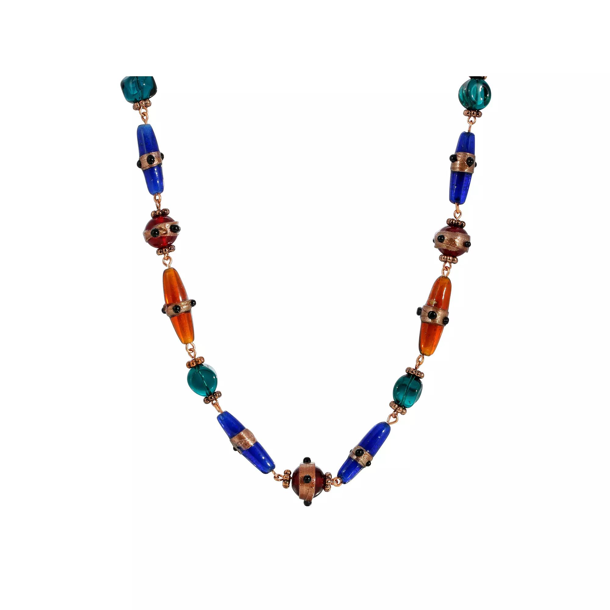 This uniquely designed copper tone necklace is a favorite amongst the artistic, spiritual like-minded fashionistas. Our necklace features sapphire colored fancy long glass beads, teal baroque glass beads, brown long glass beads with flower accent beads. Jewelry & Watches Fashion Jewelry - Necklaces