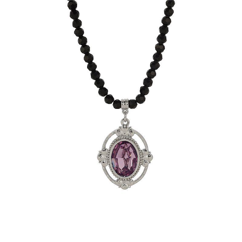 Accessorize in style with this 1928 Crystal Faceted Oval Pendant Black Beaded Necklace. Accessorize in style with this 1928 Crystal Faceted Oval Pendant Black Beaded Necklace. FEATURES Chain length: 15 in. Clasp: lobster-claw Nickel safe Metal: alloy Material: crystal, glass Plating: gold tone, silver tone Finish: polished Not appropriate for children 14 years old and younger. Size: One Size. Color: Purple. Gender: female. Age Group: adult.