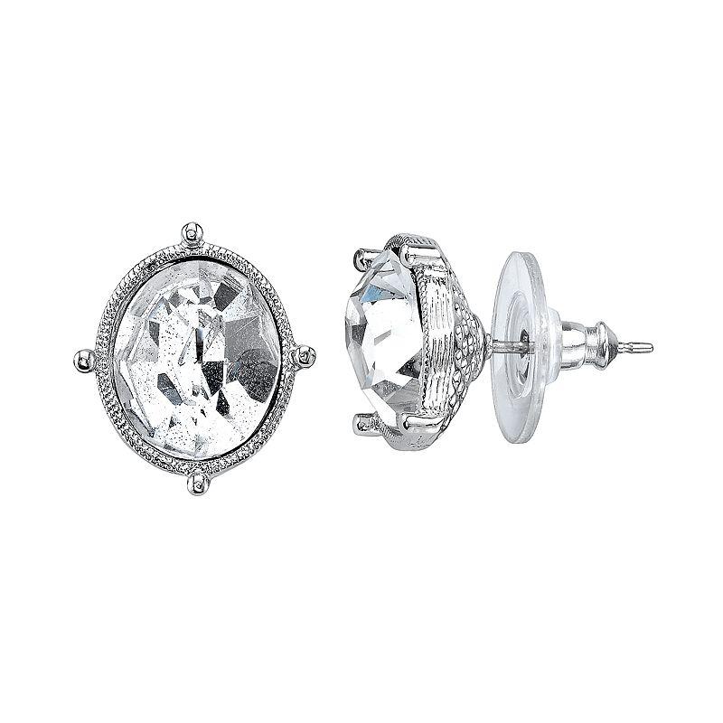 1928 Crystal Oval Stud Earrings, Womens, White