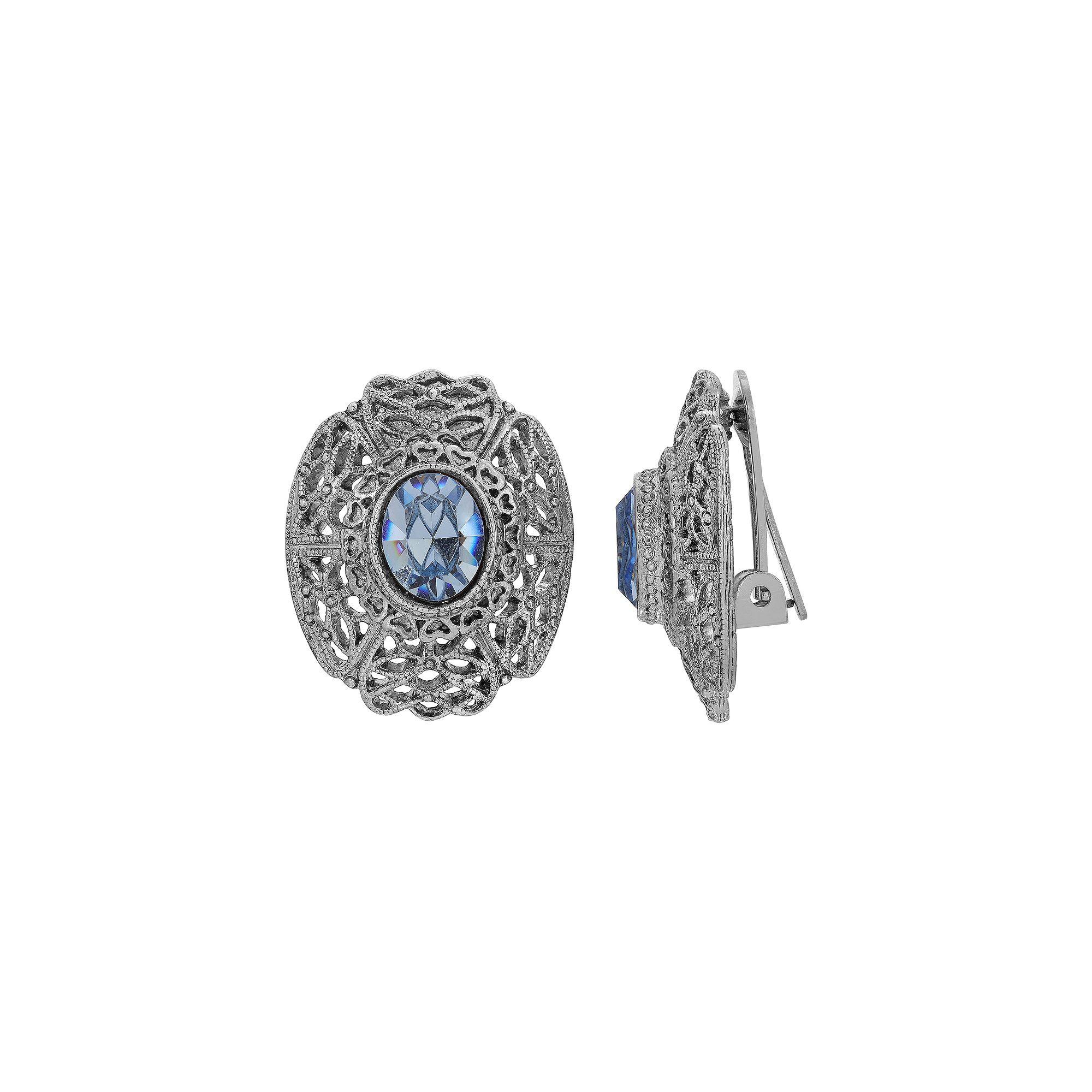 Accessorize in style with these 1928 filigree crystal oval clip-on earrings. Accessorize in style with these 1928 filigree crystal oval clip-on earrings. FEATURES Dimensions: 27.94 mm x 22.86 mm Backings: clip-on Nickel safe Metal: alloy Material: crystal Plating: gold tone, silver tone Finish: polished Not appropriate for children 14 years old and younger. Size: One Size. Color: Blue. Gender: female. Age Group: adult.