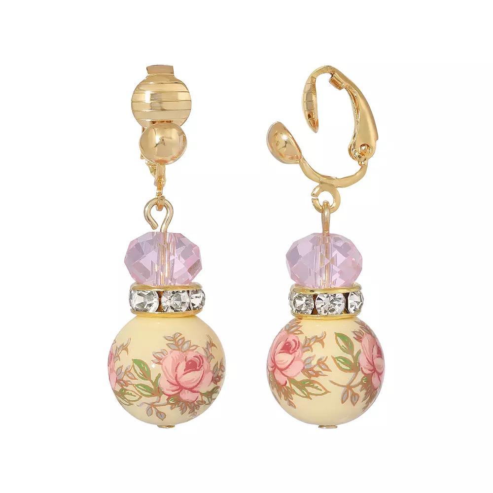 Show your love for vintage jewelry with these 1928 Floral Beaded Clip On Earrings. Show your love for vintage jewelry with these 1928 Floral Beaded Clip On Earrings. EARRING DETAILS Earring length: 1-in. Metal: alloy Backings: clip-on Plating: gold tone Finish: polished Size: One Size. Color: Pink. Gender: female. Age Group: adult.