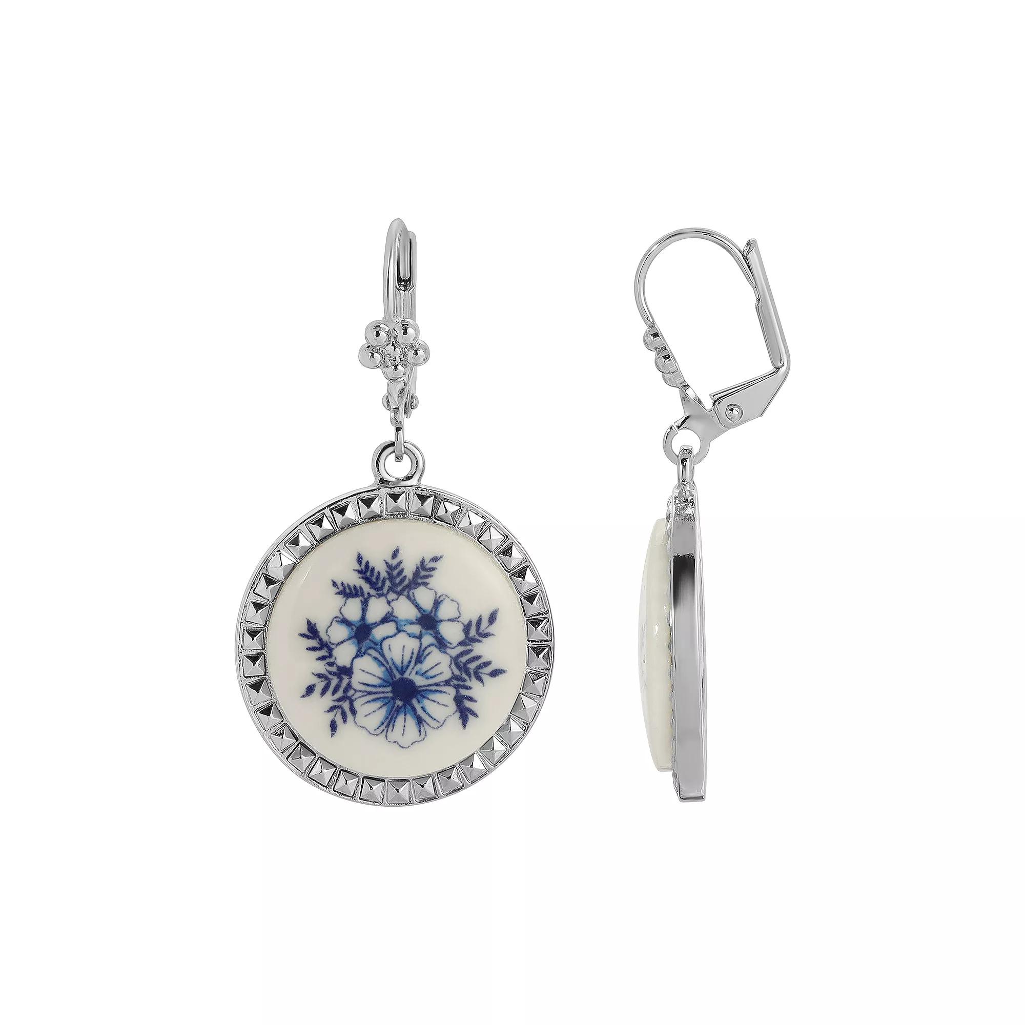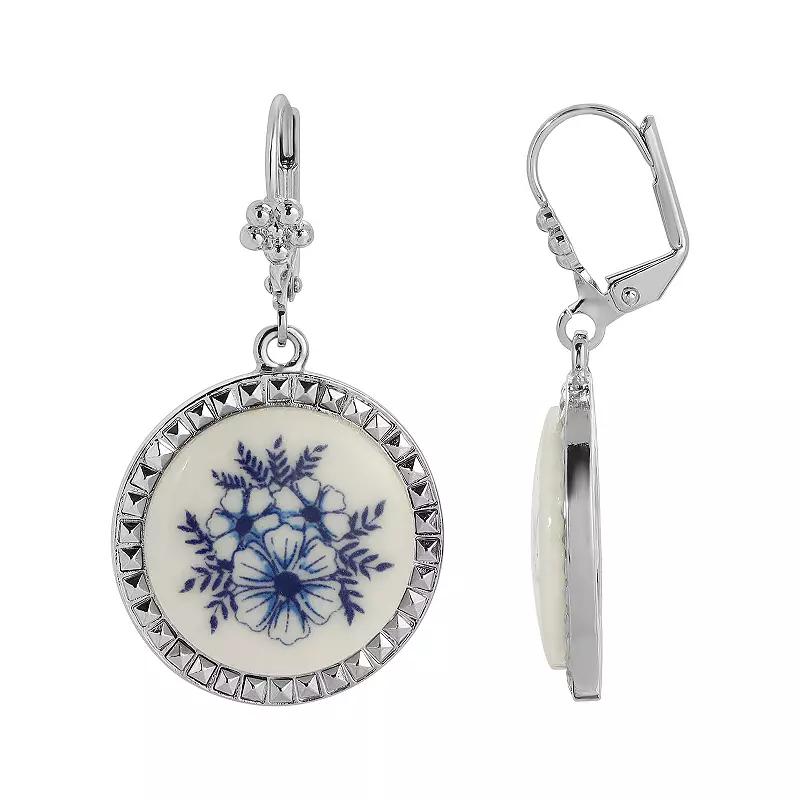 Show off your feminine side with these beautiful floral round drop earring from 1928. Show off your feminine side with these beautiful floral round drop earring from 1928. EARRING DETAILS Length: 1.6 in. Backings: leverback Metal: alloy Finish: polished Material: enamel Not appropriate for children 14 years old and younger. Size: One Size. Color: Blue. Gender: female. Age Group: adult. Material: Silver Plate.