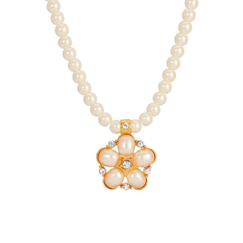 1928 Flower Simulated Pearl Pendant Necklace, Womens, White