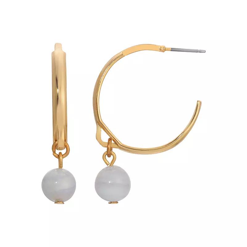 Give your jewelry box a refresh with these charming stone bead-embellished gold tone drop hoop earrings from 1928. Click on this JEWELRY & WATCHES GUIDE to learn about fit, styles, materials and more! Give your jewelry box a refresh with these charming stone bead-embellished gold tone drop hoop earrings from 1928. Click on this JEWELRY & WATCHES GUIDE to learn about fit, styles, materials and more! FEATURES Length: 1.4 in. Backings: post Nickel safe Metal: alloy Material: stone Plating: gold tone Finish: polished Made in USA with qualifications pursuant to Kohls Made in USA Substantiation Form Not appropriate for children 14 years old and younger. Size: One Size. Color: Blue. Gender: female. Age Group: adult.