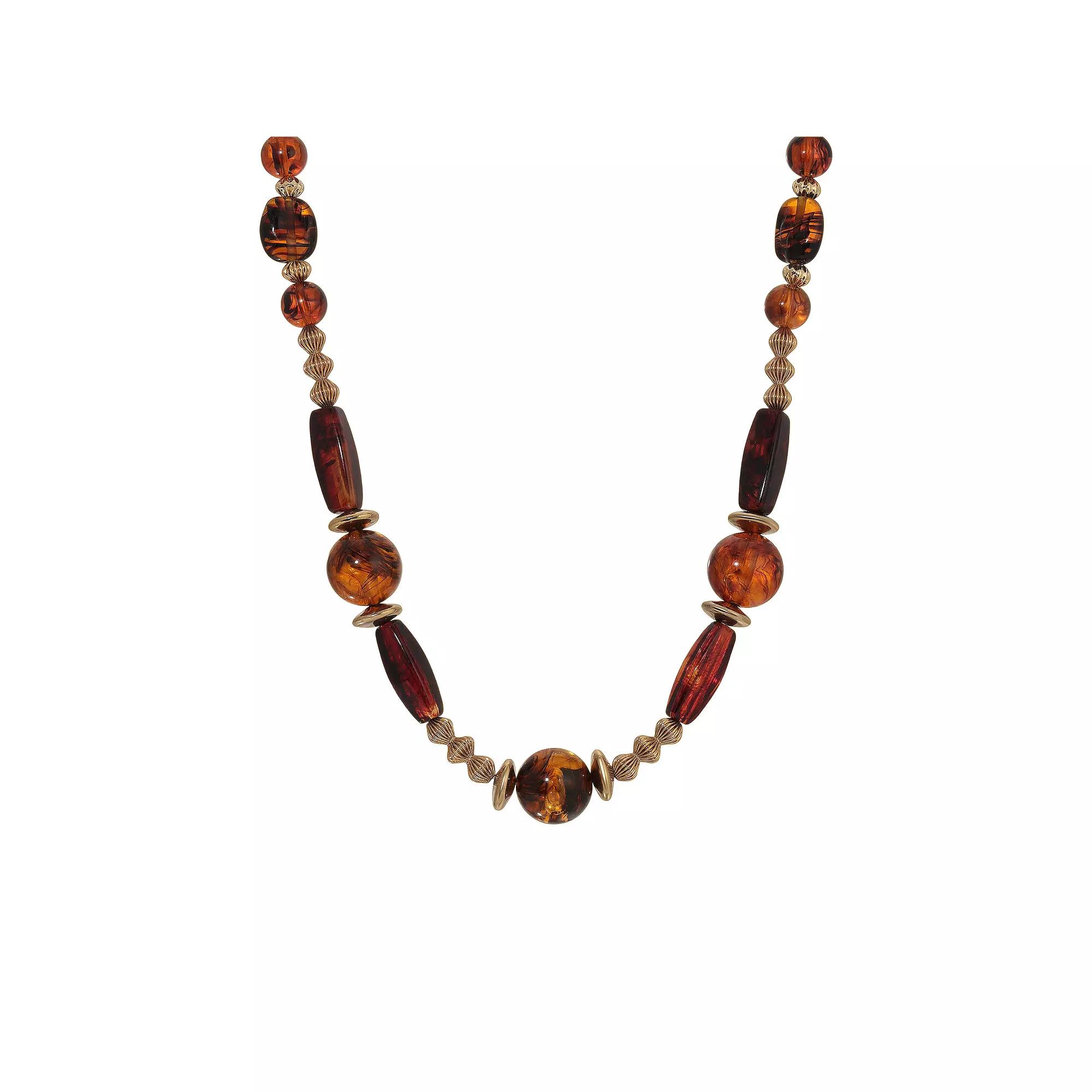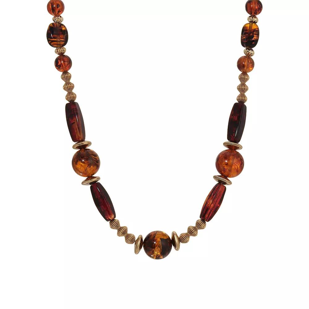 Accessorize in style with this 1928 Gold Tone Brown Tortoise Bead Necklace. Accessorize in style with this 1928 Gold Tone Brown Tortoise Bead Necklace. FEATURES Chain length: 30 in. Clasp: lobster-claw Nickel safe Metal: alloy Material: acrylic Plating: gold tone Finish: polished Not appropriate for children 14 years old and younger. Size: One Size. Gender: female. Age Group: adult.