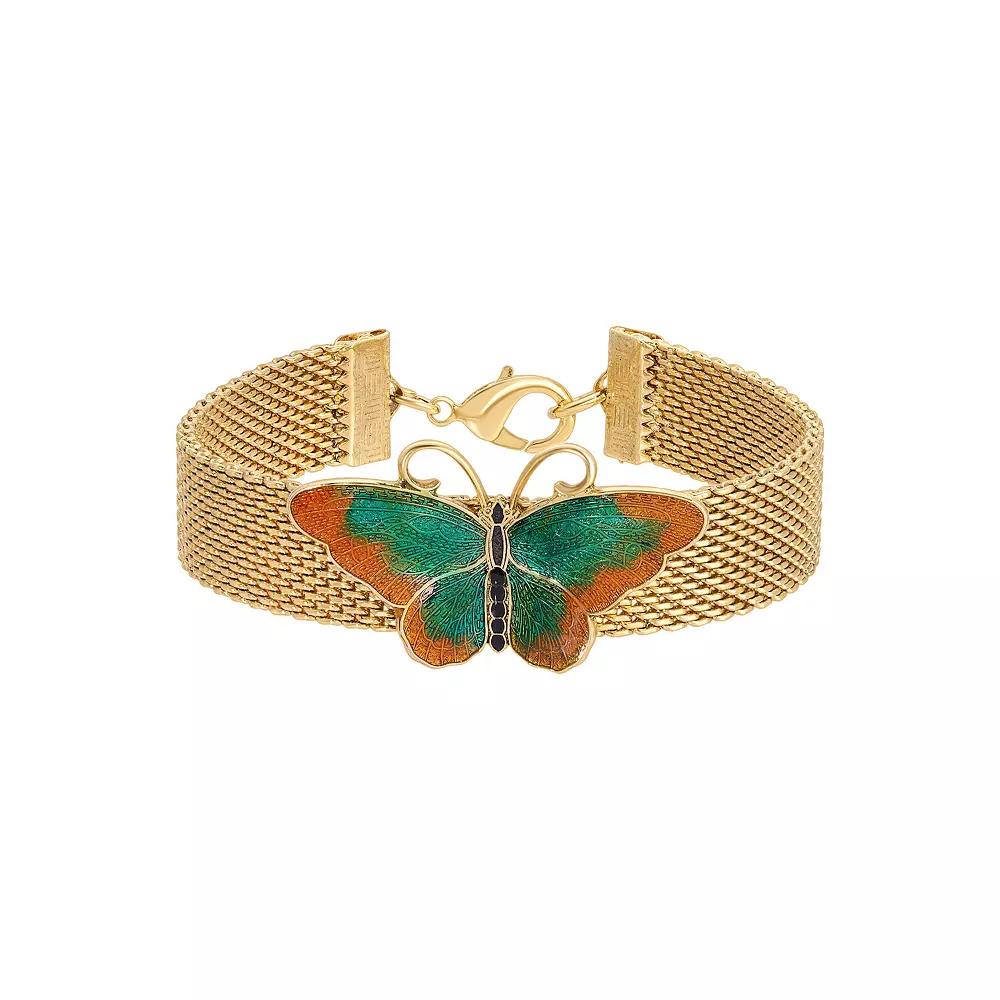 This 1928 Gold Tone Butterfly Bracelet is antique-inspired and made perfect for spring and summer. This 1928 Gold Tone Butterfly Bracelet is antique-inspired and made perfect for spring and summer. DETAILS Chain length: 7.25 in. Clasp: lobster-claw Metal: alloy Plating: gold tone Finish: polished Material: enamel Not appropriate for children 14 years old and younger. Size: One Size. Color: Green. Gender: female. Age Group: adult.