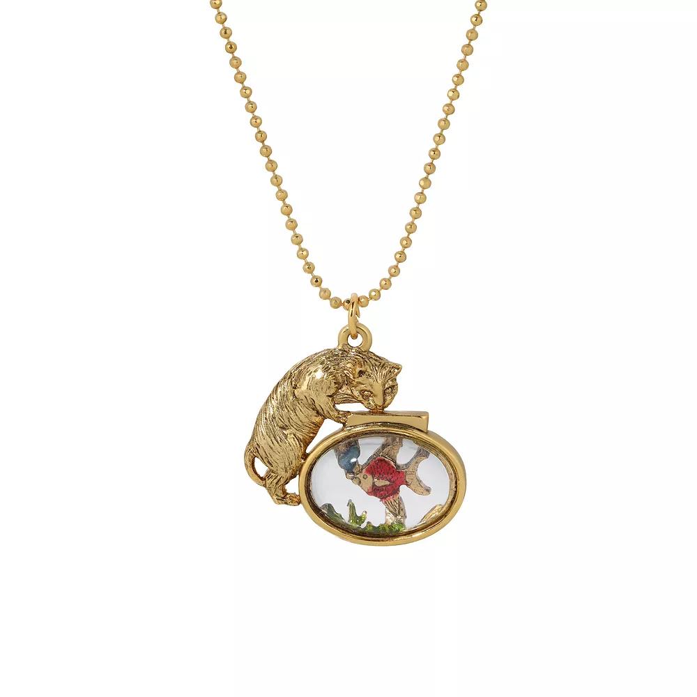 Add a playful finishing touch to any ensemble with this whimsical gold tone cat and fish bowl pendant necklace from 1928. Click on this JEWELRY & WATCHES GUIDE to learn about fit, styles, materials and more! Add a playful finishing touch to any ensemble with this whimsical gold tone cat and fish bowl pendant necklace from 1928. Click on this JEWELRY & WATCHES GUIDE to learn about fit, styles, materials and more! FEATURES Pendant length: 1.25 in. Chain length: 18 in. Clasp: lobster-claw Nickel safe Metal: alloy Material: acrylic, enamel Plating: gold tone Finish: polished All or virtually all Made in USA pursuant to Kohls Made in USA Substantiation Form Not appropriate for children 14 years old and younger. Size: One Size. Color: Yellow. Gender: female. Age Group: adult.