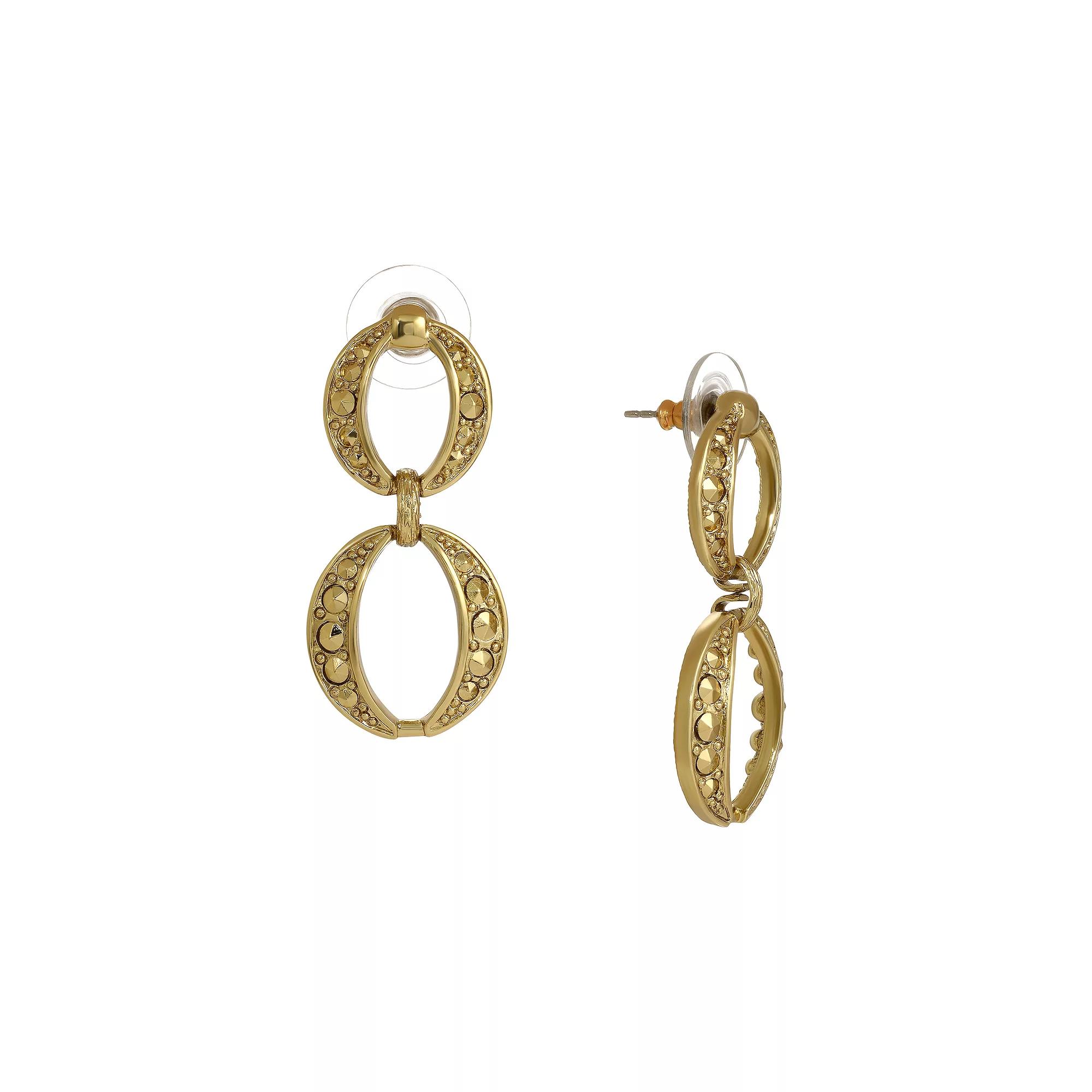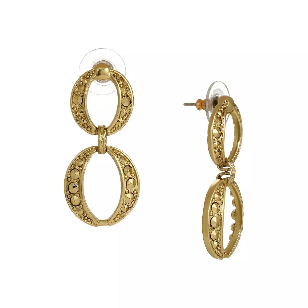 Accessorize in style with these 1928 gold tone circle drop earrings. Accessorize in style with these 1928 gold tone circle drop earrings. FEATURES Dimensions: 38 mm x 19 mm Backings: post Metal: alloy Plating: gold tone Finish: polished Not appropriate for children 14 years old and younger. Size: One Size. Color: Yellow. Gender: female. Age Group: adult.