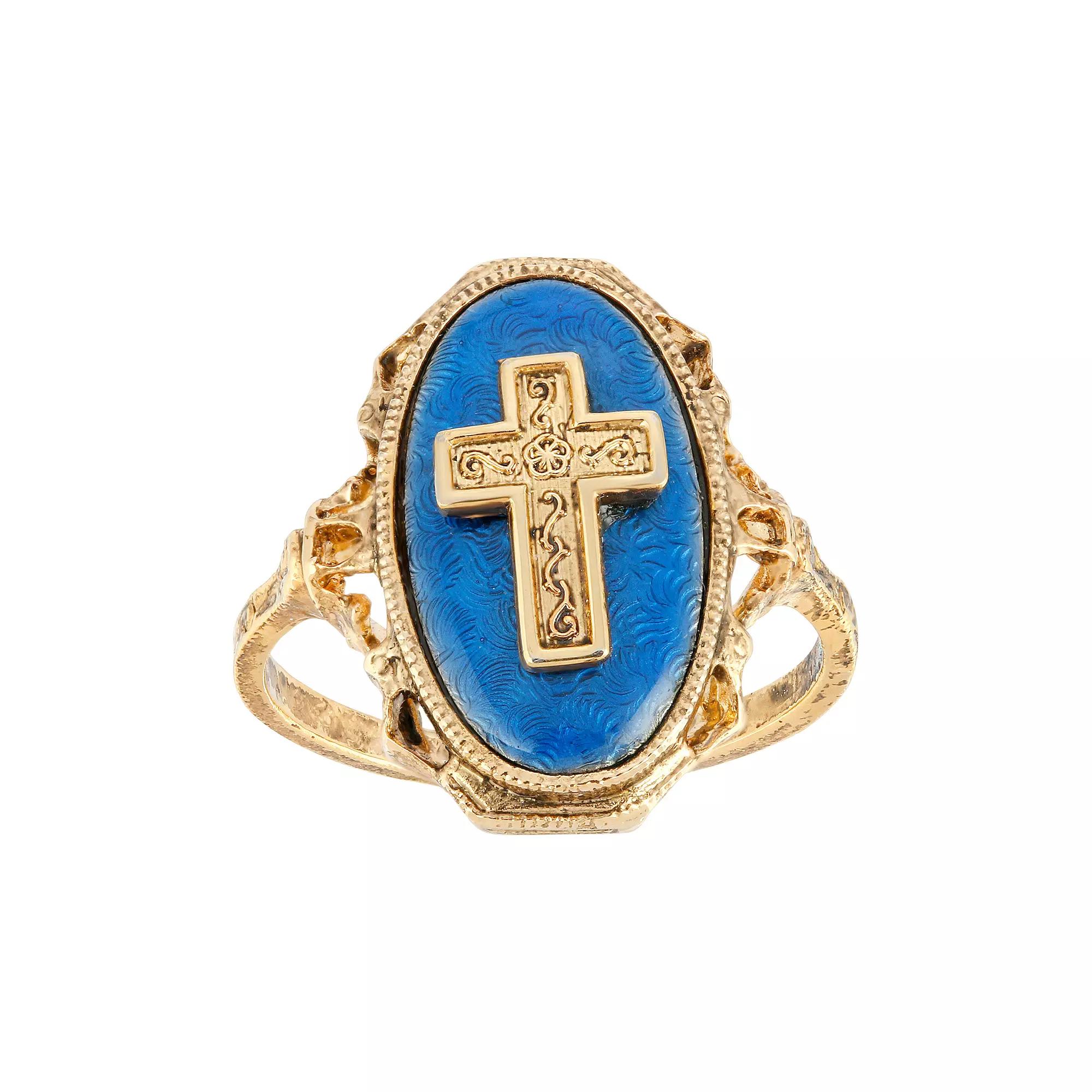 Show your spirituality with this beautiful gold tone and blue enamel Symbols of Faith ring. Show your spirituality with this beautiful gold tone and blue enamel Symbols of Faith ring. RING DETAILS Size 8 Width: 0.8 in. Metal: alloy Plating: gold tone Finish: antiqued Material: enamel Not appropriate for children 14 years old and younger. Size: One Size. Gender: female. Age Group: adult.