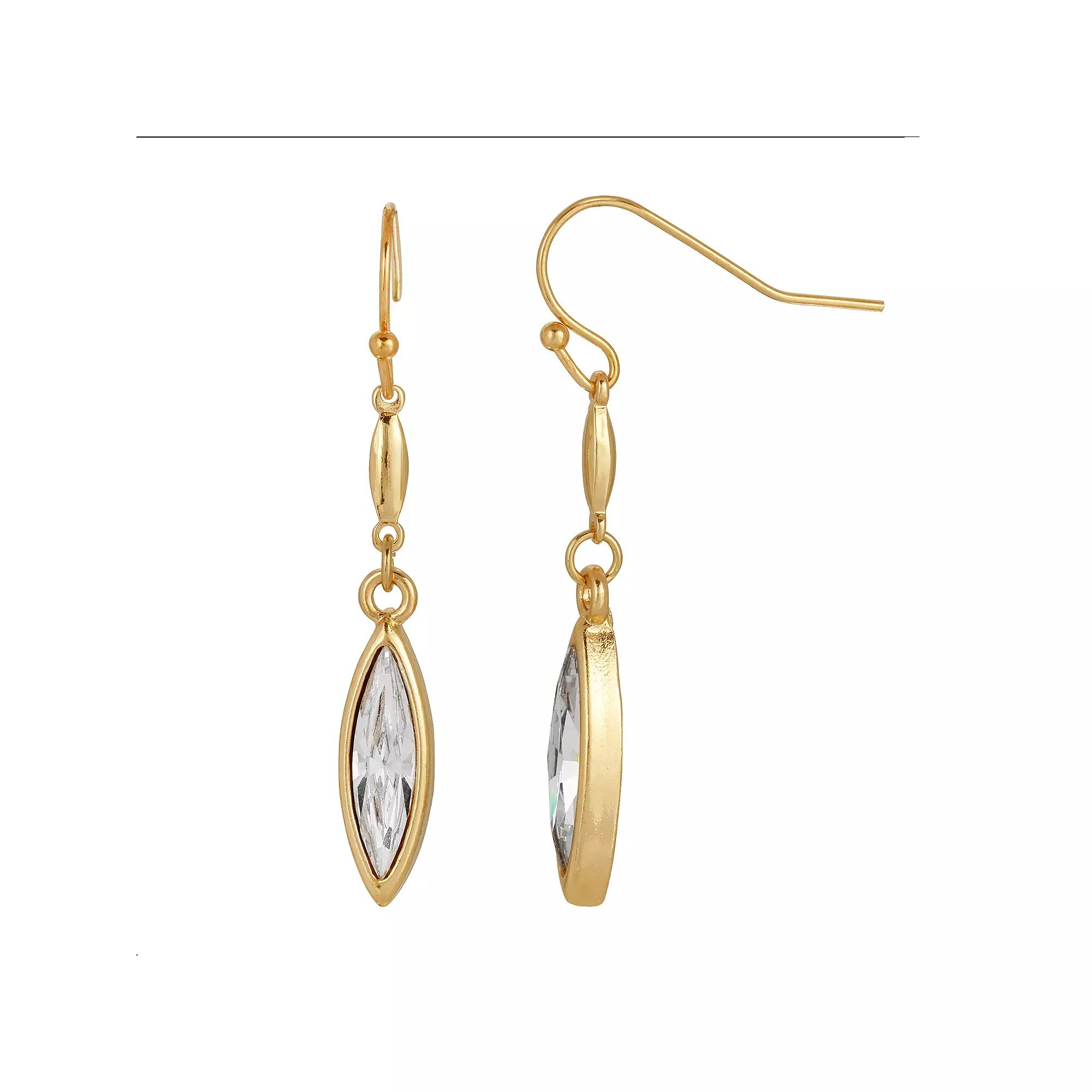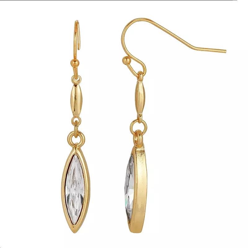 Add some vintage elegance to your wardrobe with these gold tone and navette-shaped crystal drop earrings from 1928. Add some vintage elegance to your wardrobe with these gold tone and navette-shaped crystal drop earrings from 1928. Metal: alloy Backings: fishhook Plating: gold tone Finish: polished Material: crystal Length: 1.7 in. Not appropriate for children 14 years old and younger. Size: One Size. Color: Multicolor. Gender: female. Age Group: adult.