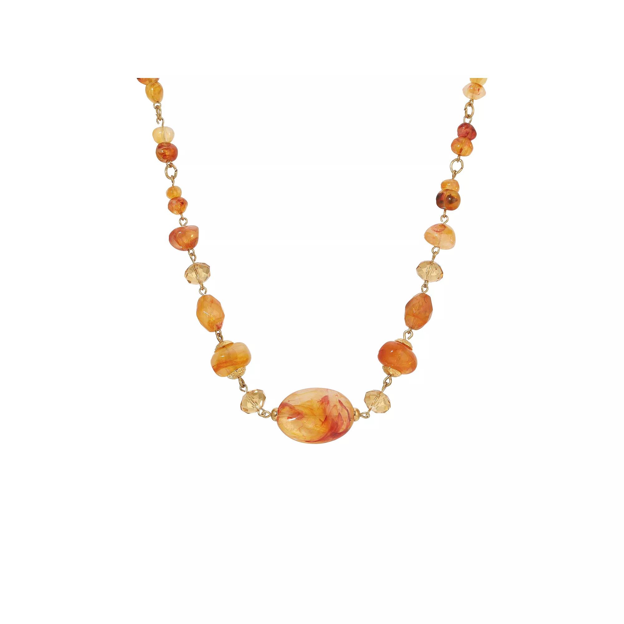 1928 Gold Tone Faux Amber Bead Necklace, Women's, Orange Product Image