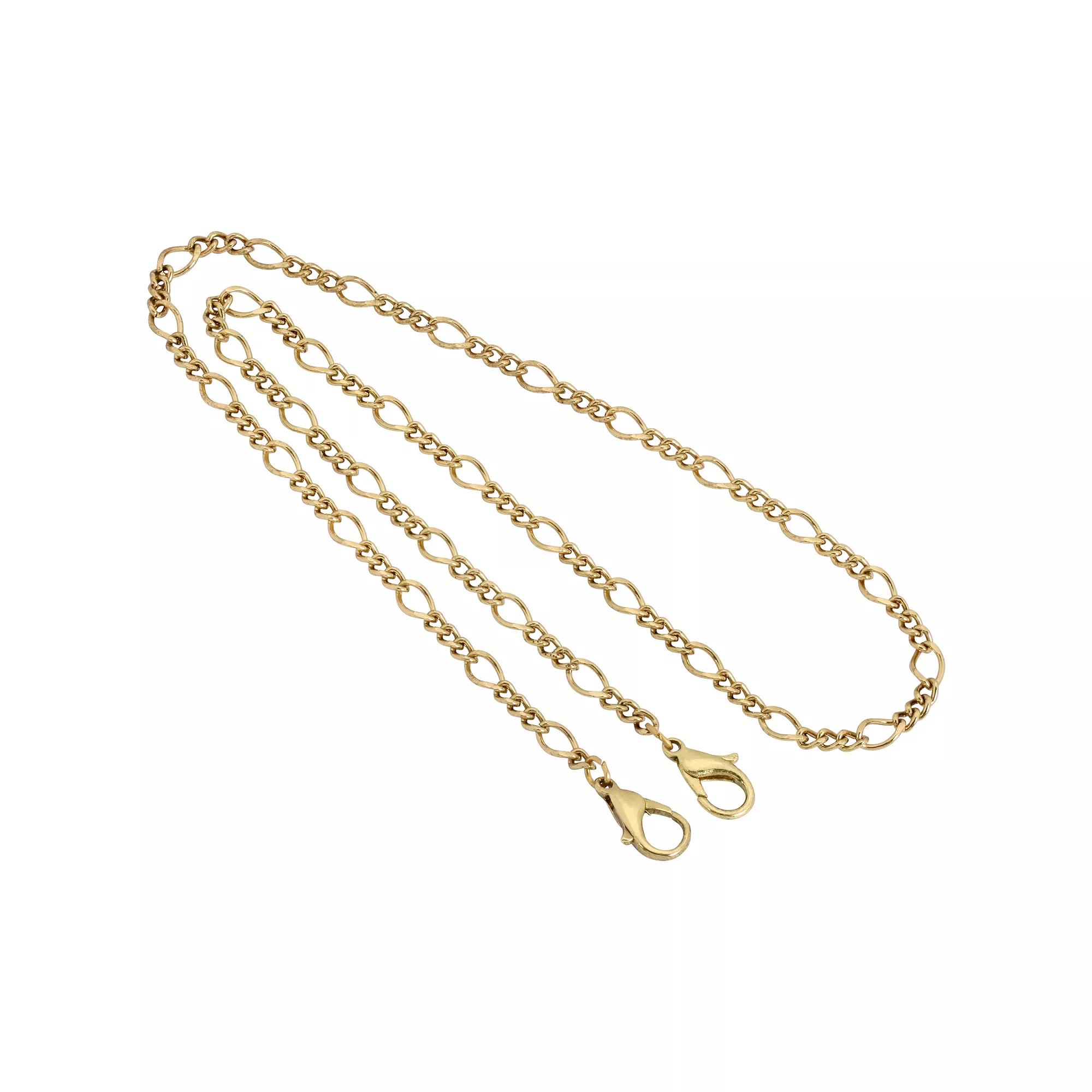 Keep it classy with this Figaro chain face mask holder with lobster clasp. Simply attach this convenient mask holder to your mask and allow it to hang freely when not in use. This chain necklace effortlessly keeps your mask fit the way you like it and prevents having to put your mask in your pocket or on contaminated surfaces. Keep it classy with this Figaro chain face mask holder with lobster clasp. Simply attach this convenient mask holder to your mask and allow it to hang freely when not in use. This chain necklace effortlessly keeps your mask fit the way you like it and prevents having to put your mask in your pocket or on contaminated surfaces. Chain length: 22 in. Clasp: lobster-claw Metal: alloy Plating: gold tone Finish: polished Not appropriate for children 14 years old and younger. Size: 22. Color: Yellow. Gender: female. Age Group: adult. Material: Gold Plate.