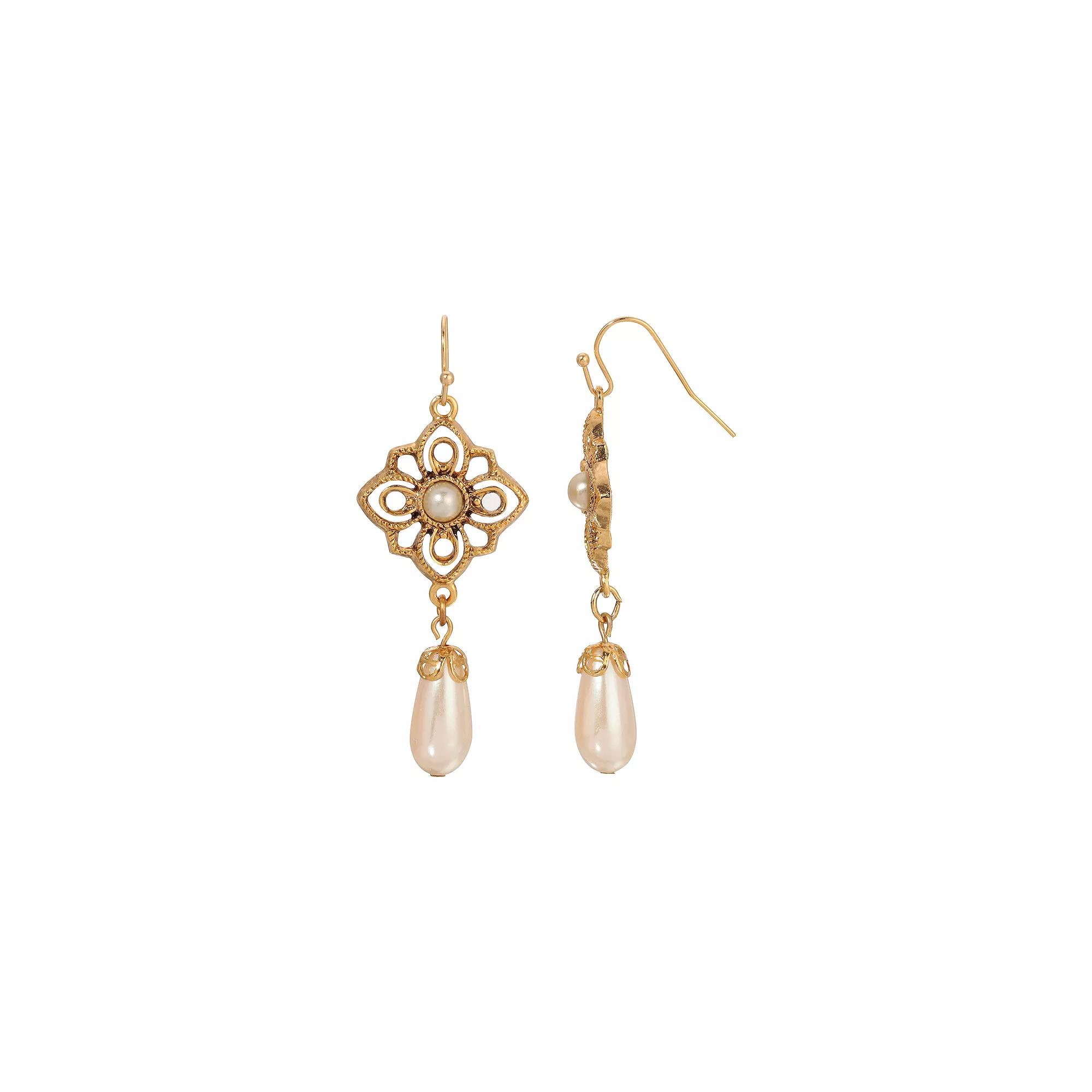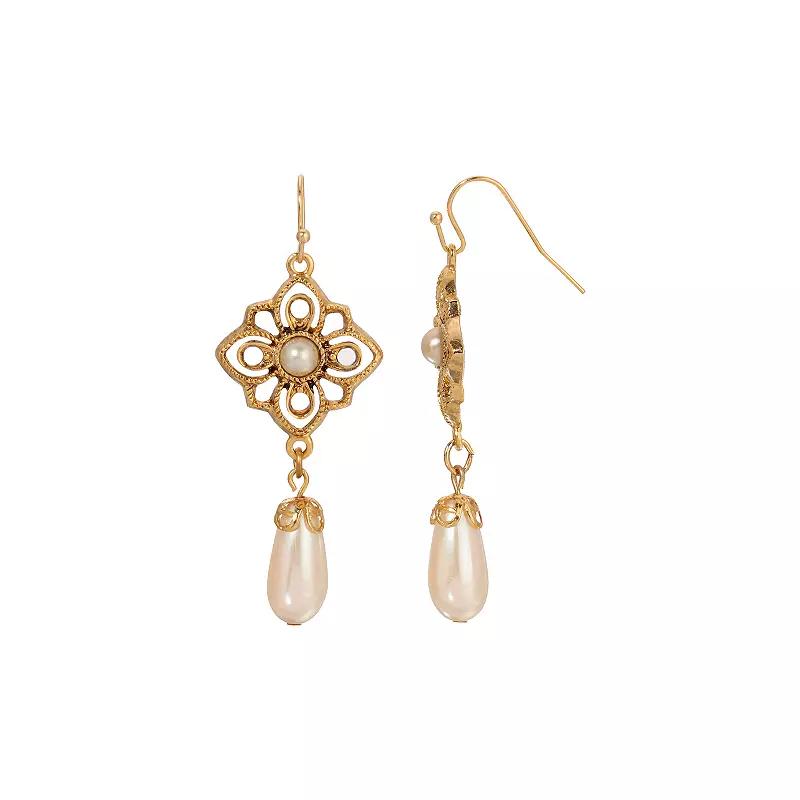 Accessorize in style with these 1928 Gold Tone Filigree Faux Pearl Drop Earrings. Accessorize in style with these 1928 Gold Tone Filigree Faux Pearl Drop Earrings. FEATURES Dimensions: 57 mm x 22 mm Backings: fishhook Nickel safe Metal: alloy Material: acrylic Plating: gold tone Finish: polished Not appropriate for children 14 years old and younger. Size: One Size. Color: White. Gender: female. Age Group: adult.