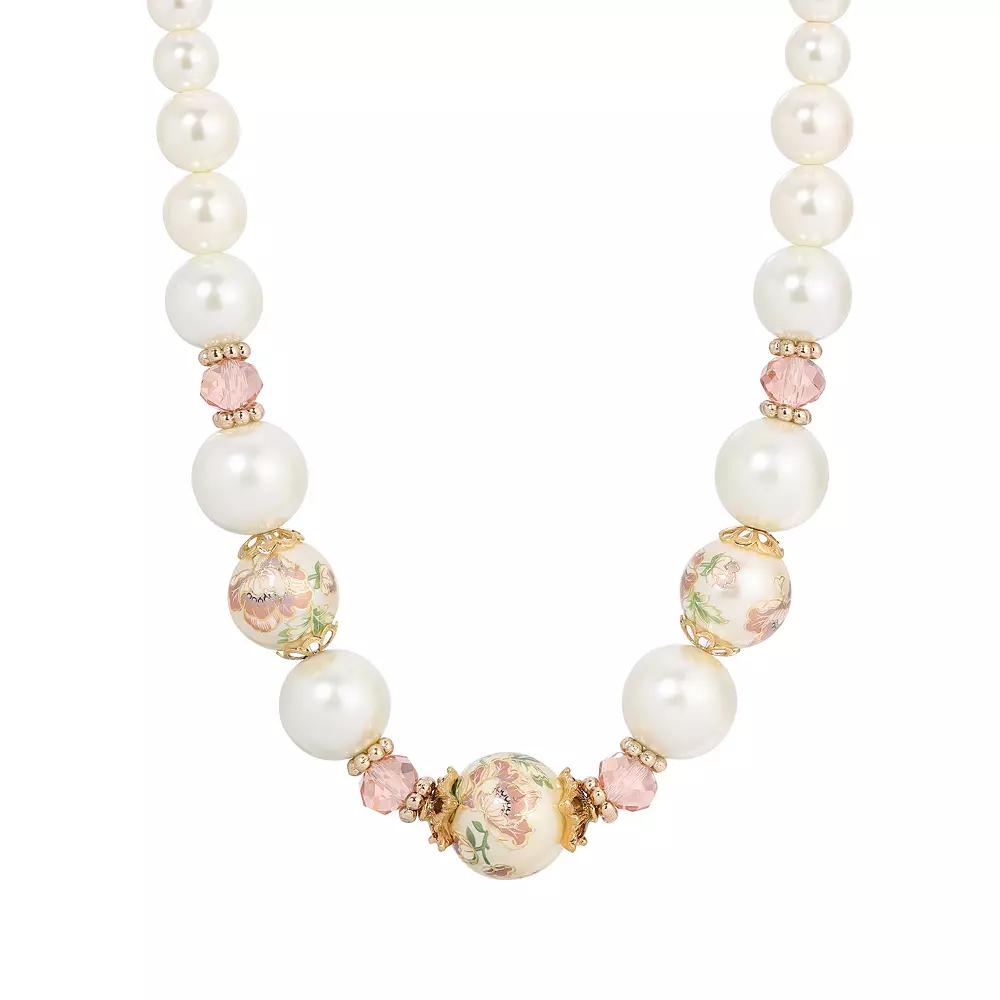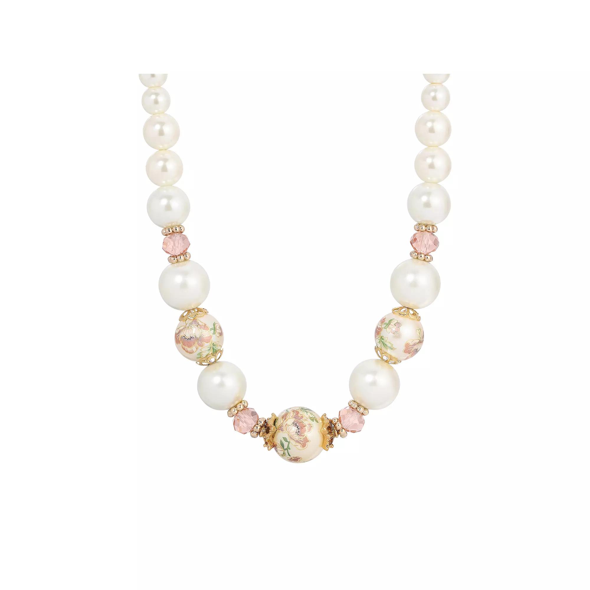 This gold tone and floral embellished simulated pearl statement necklace from 1928 is all it takes to dress up a casual outfit. This gold tone and floral embellished simulated pearl statement necklace from 1928 is all it takes to dress up a casual outfit. FEATURES Chain length: 16 in. Clasp: lobster-claw Metal: alloy Plating: gold tone Finish: polished Material: acrylic, glass Nickel safe Not appropriate for children 14 years old and younger. Size: One Size. Color: White. Gender: female. Age Group: adult.