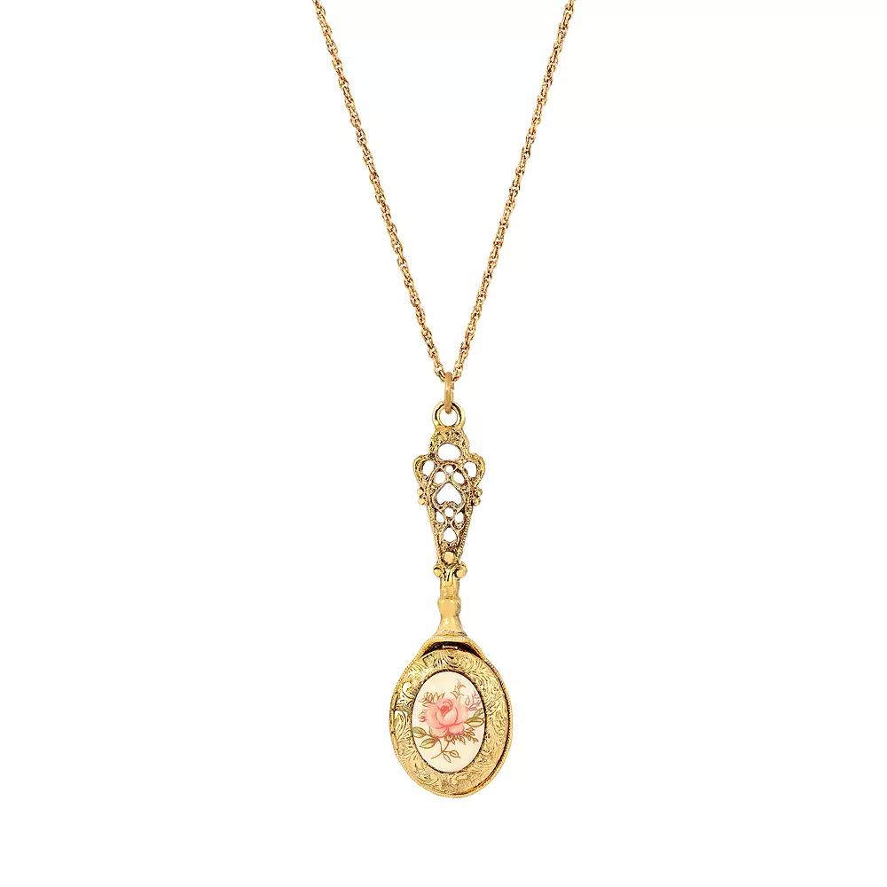 Take your most treasured photo everywhere you go with this magnificent locket pendant. This antique-inspired floral pendant features a pink desert rose decal and opens and closes with ease. Take your most treasured photo everywhere you go with this magnificent locket pendant. This antique-inspired floral pendant features a pink desert rose decal and opens and closes with ease. FEATURES Pendant length: 2.4 in. Clasp: lobster-claw Metal: alloy Material: acrylic Plating: gold tone Finish: polished Size: One Size. Gender: female. Age Group: adult.