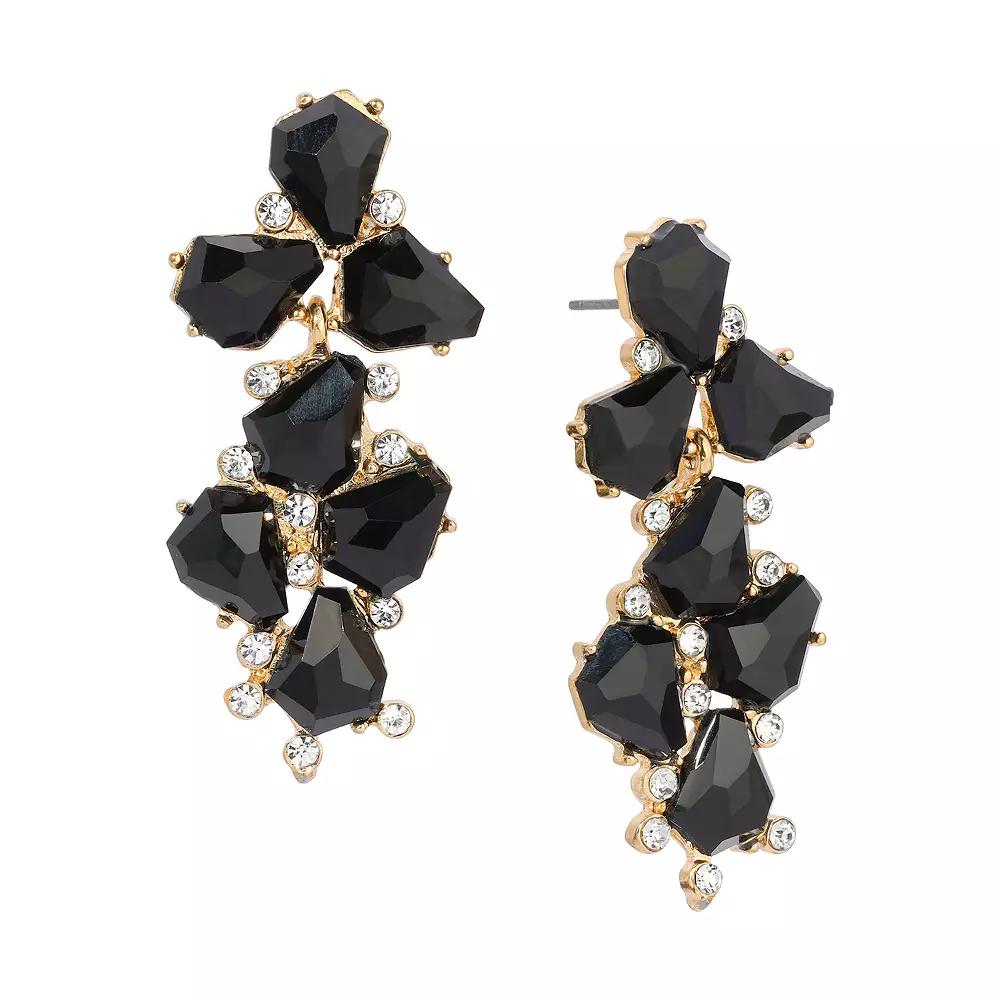 Elevate your look with these captivating 1928 jet black crystal accent drop earrings. Click on this JEWELRY & WATCHES GUIDE to learn about fit, styles, materials and more! Elevate your look with these captivating 1928 jet black crystal accent drop earrings. Click on this JEWELRY & WATCHES GUIDE to learn about fit, styles, materials and more! FEATURES 1.9L x 0.85W Backings: post Metal: alloy Material: glass Plating: gold tone Finish: polished Crystal accents Nickel safe Size: One Size. Gender: female. Age Group: adult.