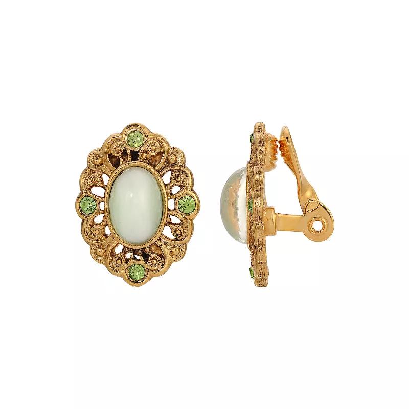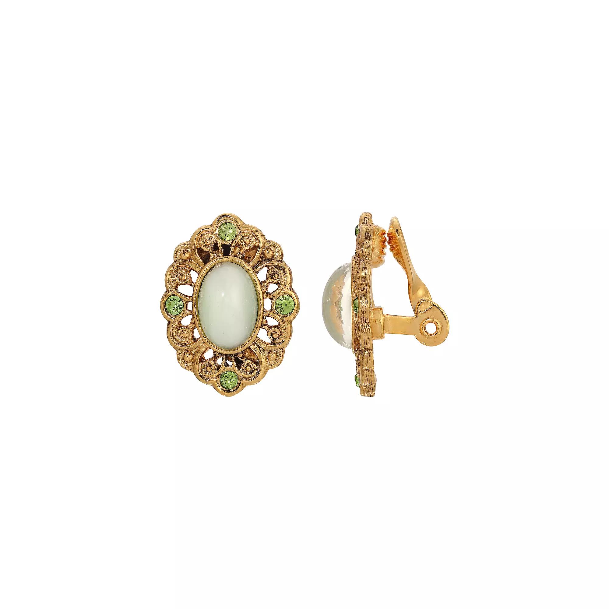 Accessorize in style with these 1928 gold tone light green stone oval clip earrings. Click on this JEWELRY & WATCHES GUIDE to learn about fit, styles, materials and more! Accessorize in style with these 1928 gold tone light green stone oval clip earrings. Click on this JEWELRY & WATCHES GUIDE to learn about fit, styles, materials and more! FEATURES Dimensions: 25.4 mm x 20.32 mm Backings: clip-on Nickel safe Metal: alloy Material: crystal, glass Plating: gold tone Finish: polished Not appropriate for children 14 years old and younger. Size: One Size. Gender: female. Age Group: adult.