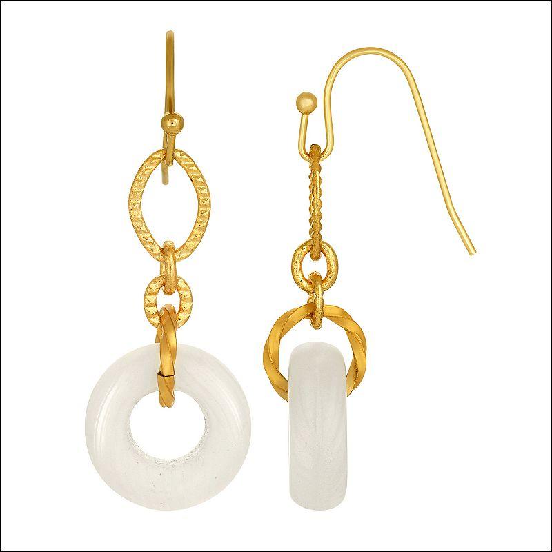 Add a touch of visual interest to any outfit with these textured gold tone links and glass open circle drop earrings from 1928. Add a touch of visual interest to any outfit with these textured gold tone links and glass open circle drop earrings from 1928. Metal: alloy Backings: fishhook Plating: gold tone Finish: polished Material: glass Length: 1.6 in. Not appropriate for children 14 years old and younger. Size: One Size. Color: White. Gender: female. Age Group: adult.
