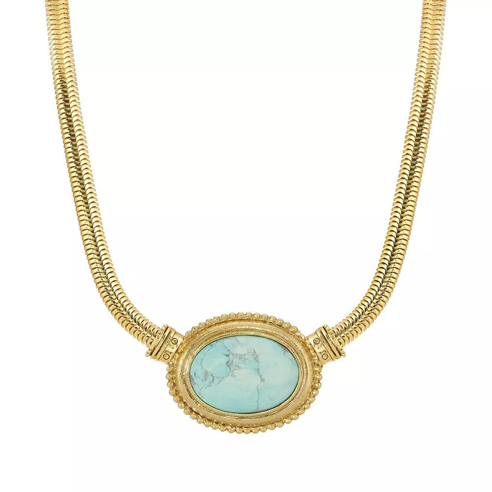 This elegant gold-tone oval collar necklace will be the perfect finishing touch for your look. This elegant gold-tone oval collar necklace will be the perfect finishing touch for your look. NECKLACE DETAILS Pendant length: 1.8 in. Chain length: 16 in. Clasp: lobster-claw Metal: alloy Plating: gold tone Finish: polished Not appropriate for children 14 years old and younger. Gemstones may have been treated to enhance their appearance. Special care may be required. Please visit our Gemstone Treatment & Special Care Guide for more information. Size: 16. Color: Blue. Gender: female. Age Group: adult. Material: Gold Plate.