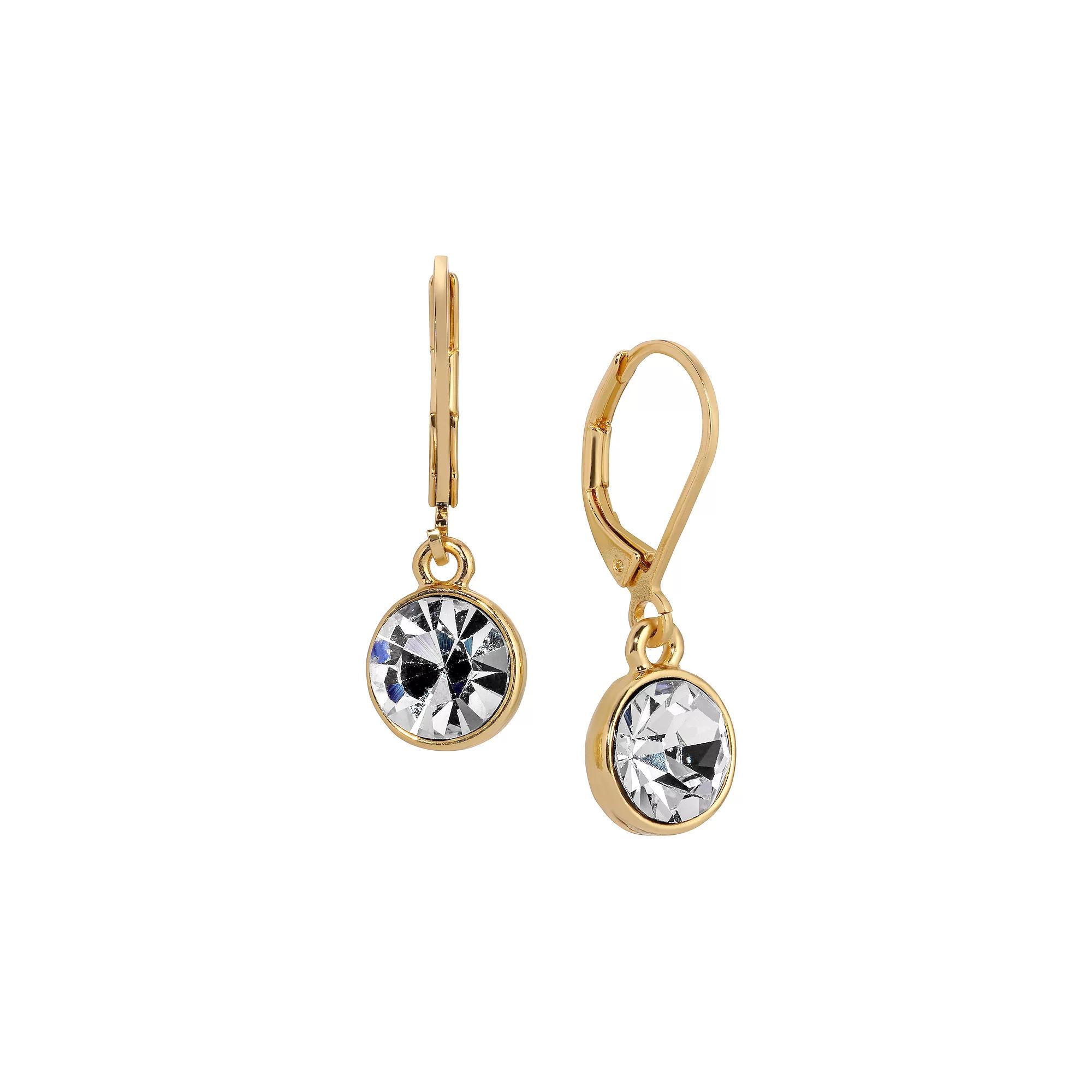 Add the finishing touches to your outfit with these 1928 gold tone round faceted crystal leverback drop earrings. Click on this JEWELRY & WATCHES GUIDE to learn about fit, styles, materials and more! Add the finishing touches to your outfit with these 1928 gold tone round faceted crystal leverback drop earrings. Click on this JEWELRY & WATCHES GUIDE to learn about fit, styles, materials and more! FEATURES Earring dimensions: 27 mm x 10 mm Backings: leverback Nickel free Metal: alloy Material: crystal Plating: gold tone Finish: polished All or virtually all Made in USA pursuant to Kohls Made in USA Substantiation Form Not appropriate for children 14 years old and younger. Size: One Size. Color: Color. Gender: female. Age Group: adult.