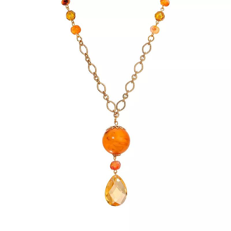 Add a pop of color to any ensemble with this eye-catching artificial amber beaded gold tone Y-necklace from 1928. Click on this JEWELRY & WATCHES GUIDE to learn about fit, styles, materials and more! Add a pop of color to any ensemble with this eye-catching artificial amber beaded gold tone Y-necklace from 1928. Click on this JEWELRY & WATCHES GUIDE to learn about fit, styles, materials and more! FEATURES Drop length: 2.9 in. Chain length: 28 in. Clasp: lobster-claw Nickel safe Metal: alloy Material: acrylic, glass Plating: gold tone Finish: polished All or virtually all Made in USA pursuant to Kohls Made in USA Substantiation Form Not appropriate for children 14 years old and younger. Size: One Size. Color: Brown. Gender: female. Age Group: adult.