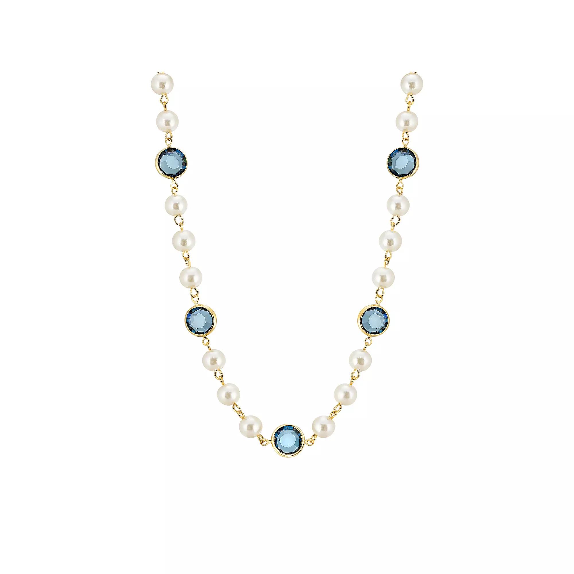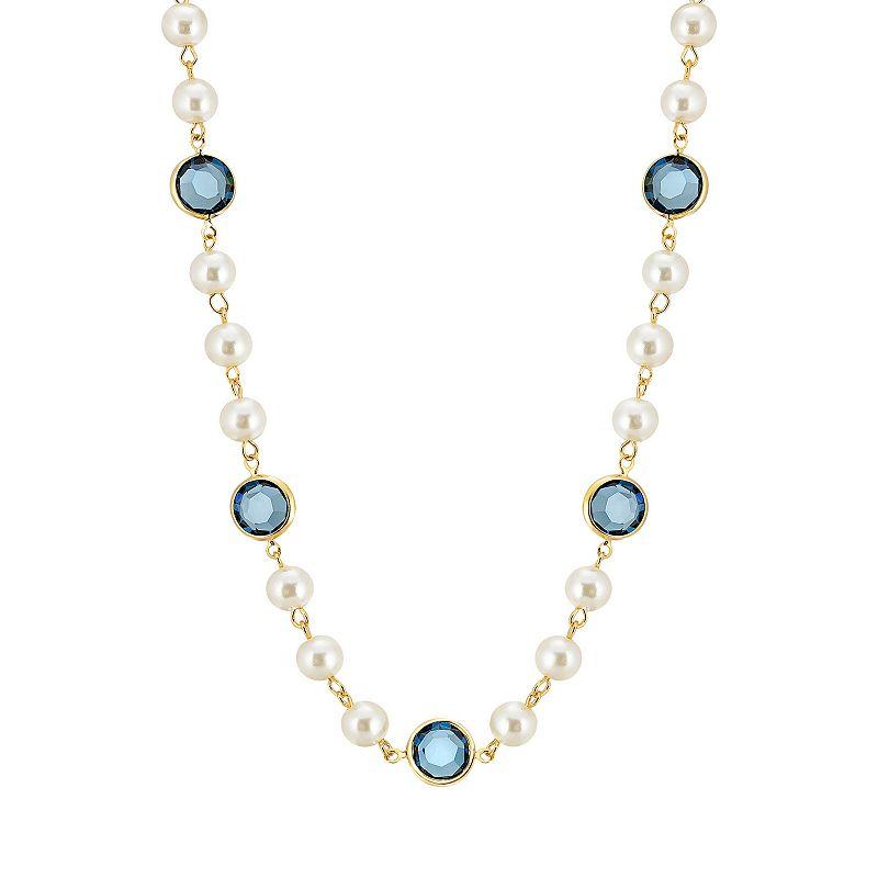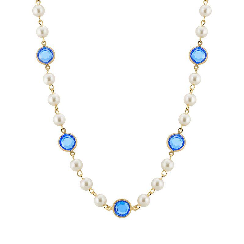 Made with dazzling crystals, this strandage necklace is the perfect way to add a pop of color to any outfit. Made with dazzling crystals, this strandage necklace is the perfect way to add a pop of color to any outfit. Metal: alloy Length: 16 in. with 3-in. extender Plating: gold tone Finish: polished Clasp: lobster-claw Not appropriate for children 14 years old and younger. Size: One Size. Color: Blue. Gender: female. Age Group: adult. Material: Gold Plate.
