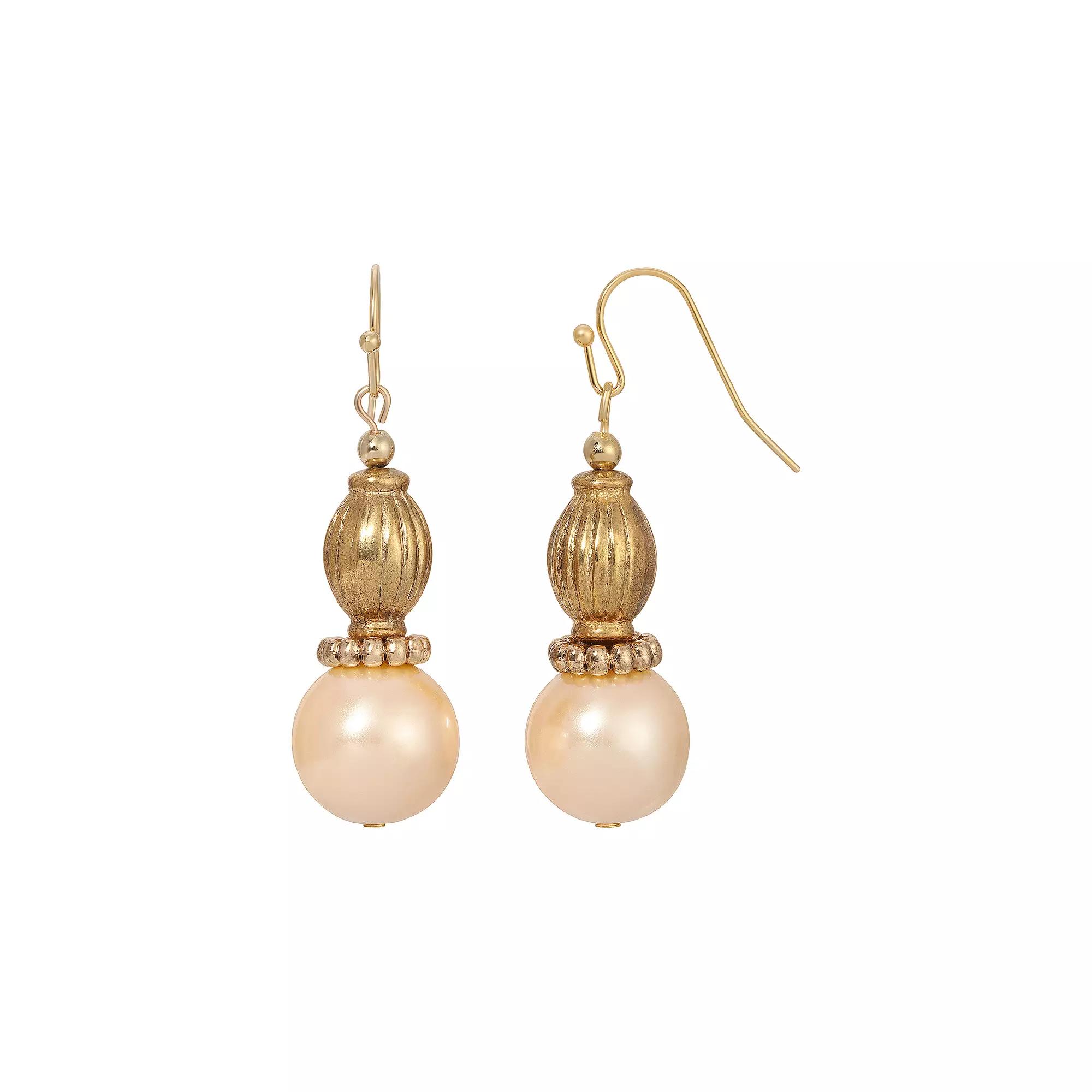 Featuring round simulated pearls with oval ridged gold tone dipped beads on fish hooks, these 1928 earrings are a classic combination of vintage styles. Featuring round simulated pearls with oval ridged gold tone dipped beads on fish hooks, these 1928 earrings are a classic combination of vintage styles. FEATURES Dimensions: 46 mm x 14 mm Backings: fishhook Metal: alloy Plating: gold tone Finish: polished Stone: simulated pearl Size: One Size. Color: White. Gender: female. Age Group: adult.