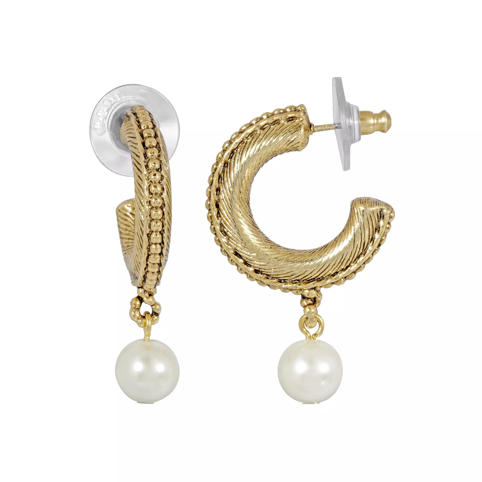 1928 Gold Tone & Simulated Pearl Drop Hoop Earrings, Womens, White