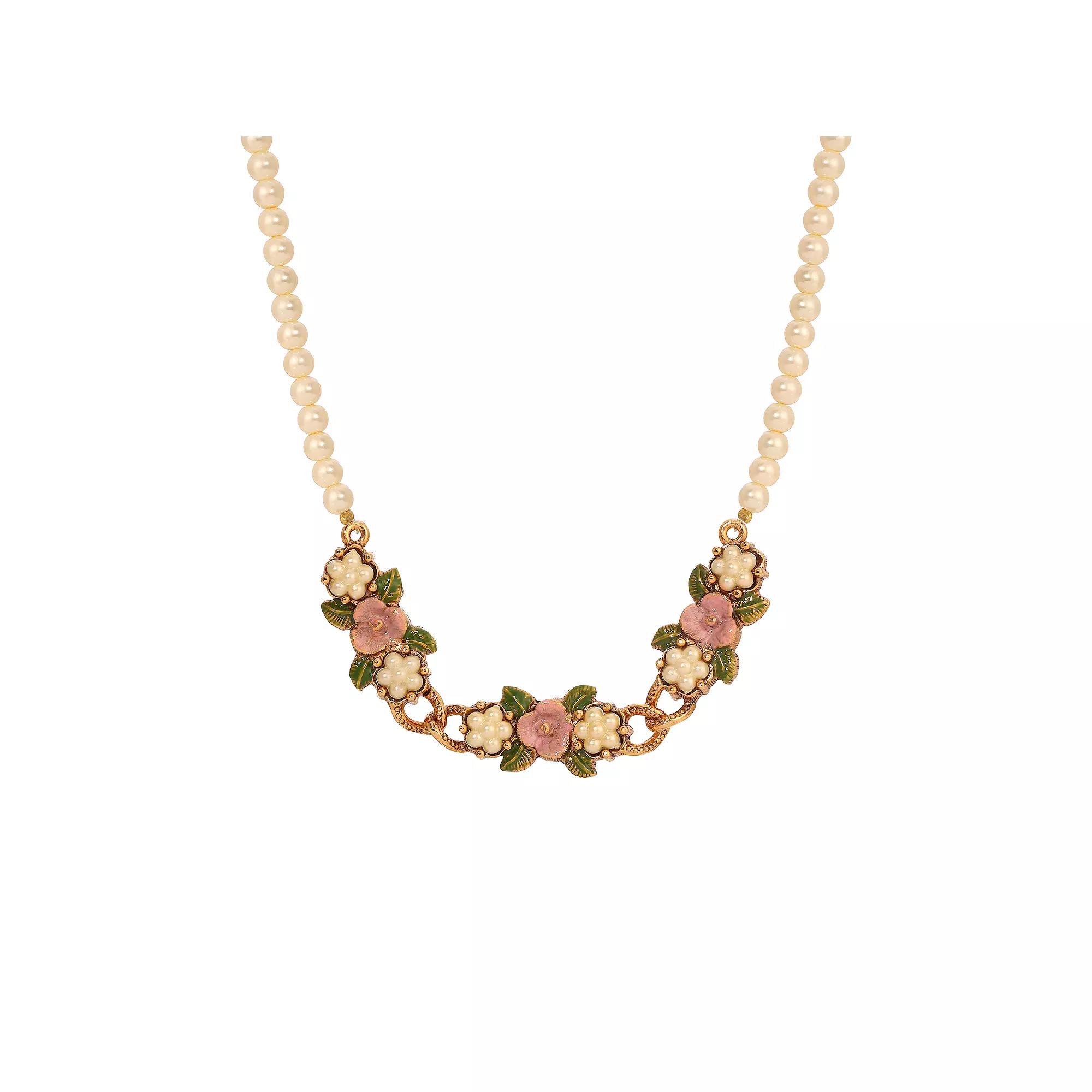 Youll simply adore this beautifully designed 1928 simulated pearl strand necklace featuring hand enameled flowers and acrylic pearl flowers. Youll simply adore this beautifully designed 1928 simulated pearl strand necklace featuring hand enameled flowers and acrylic pearl flowers. FEATURES Length: 0.5 in. Chain length: 17 in. + 3-in. extender Clasp: lobster-claw Metal: alloy Material: acrylic, enamel, glass Plating: gold tone Finish: polished Size: One Size. Color: Pink. Gender: female. Age Group: adult.