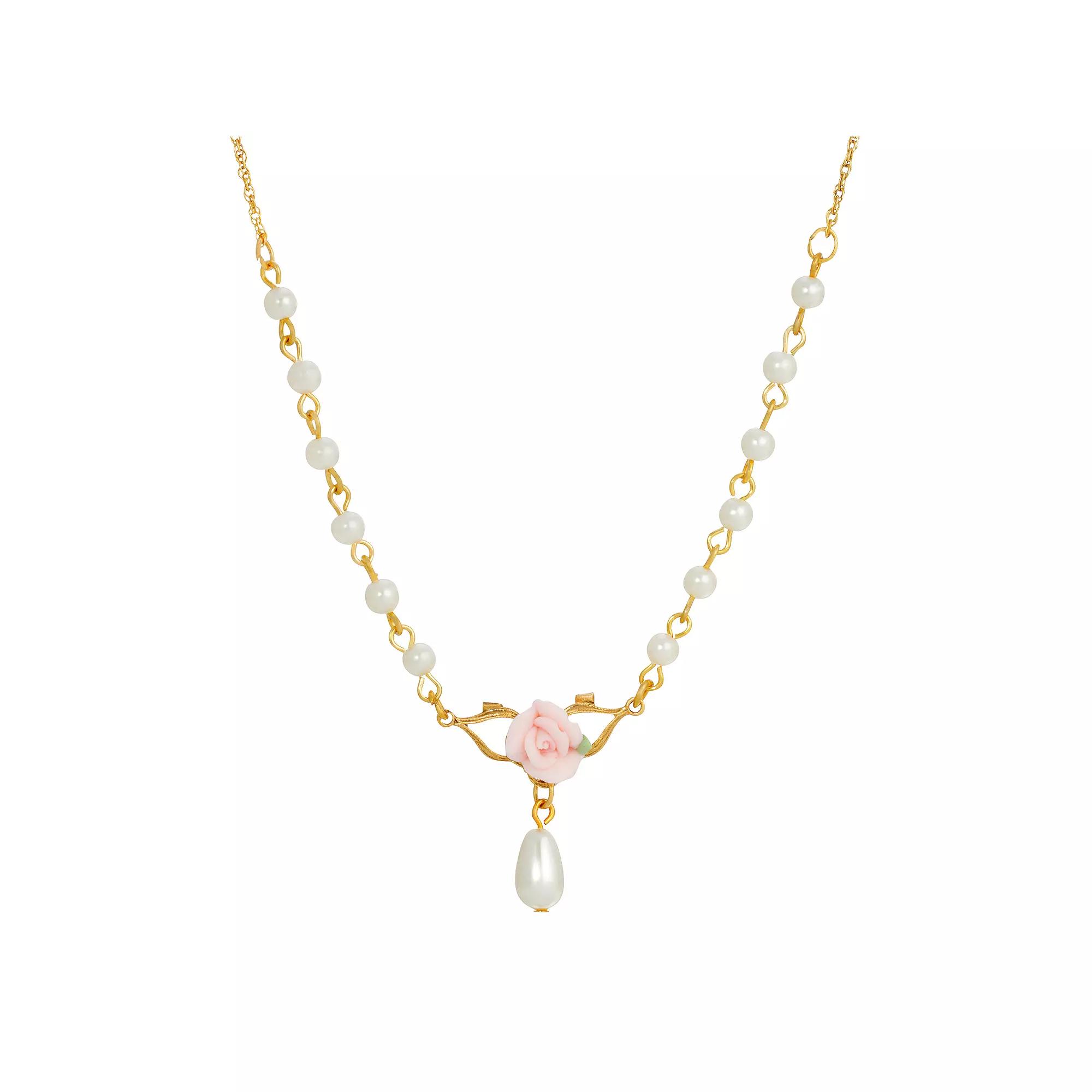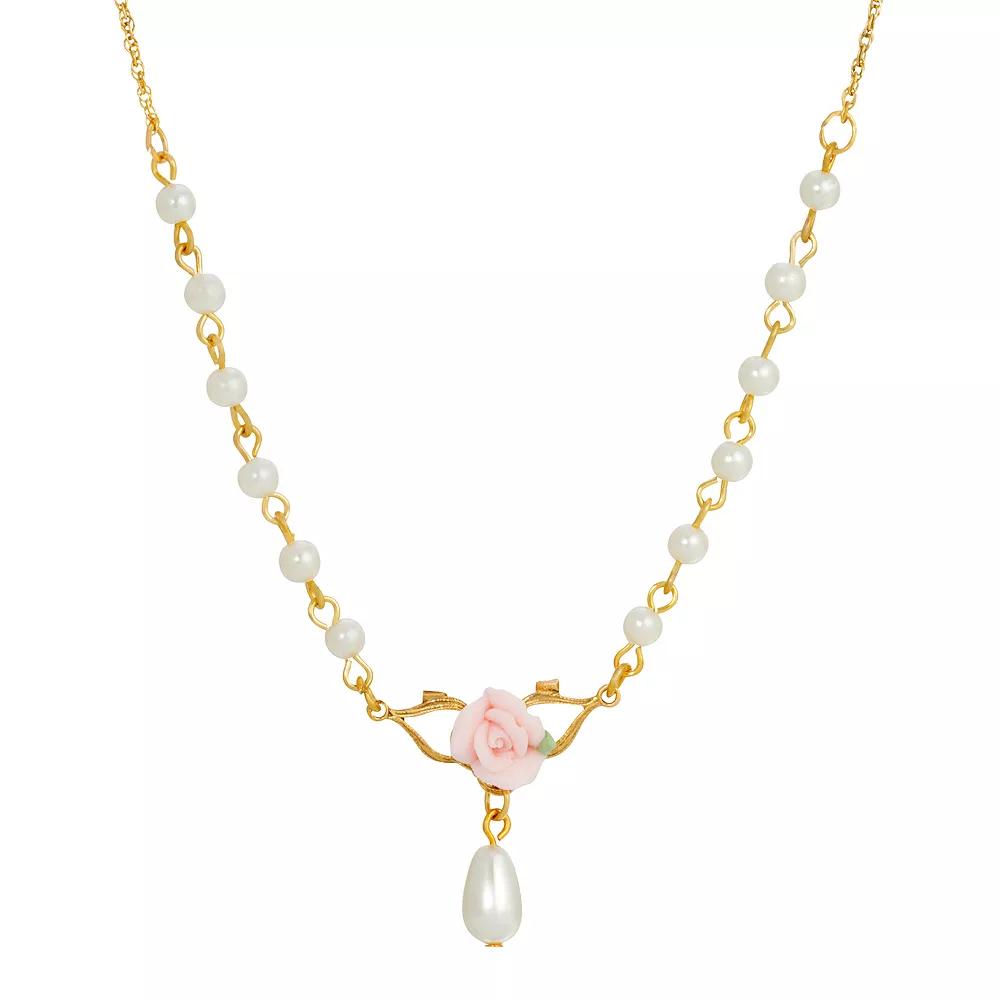 Add a sweet floral touch to any ensemble with this porcelain rose and simulated pearl-accented gold tone Y-necklace from 1928. Add a sweet floral touch to any ensemble with this porcelain rose and simulated pearl-accented gold tone Y-necklace from 1928. FEATURES Drop length: 0.95 in. Chain length: 16 in. + 2-in. extender Clasp: lobster-claw Metal: alloy Plating: gold tone Finish: polished Material: acrylic, porcelain Not appropriate for children 14 years old and younger. Size: One Size. Color: Pink. Gender: female. Age Group: adult.