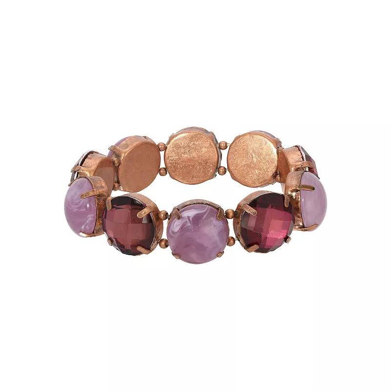 This oval acrylic stone bracelet with decorative gold-tone accents adds vintage elegance to your wardrobe. Click on this JEWELRY & WATCHES GUIDE to learn about fit, styles, materials and more! This oval acrylic stone bracelet with decorative gold-tone accents adds vintage elegance to your wardrobe. Click on this JEWELRY & WATCHES GUIDE to learn about fit, styles, materials and more! FEATURES Length: 7.25 in. Nickel safe Metal: alloy Material: acrylic Plating: black, gold tone, copper tone, black Finish: polished Size: One Size. Color: Purple. Gender: female. Age Group: adult.