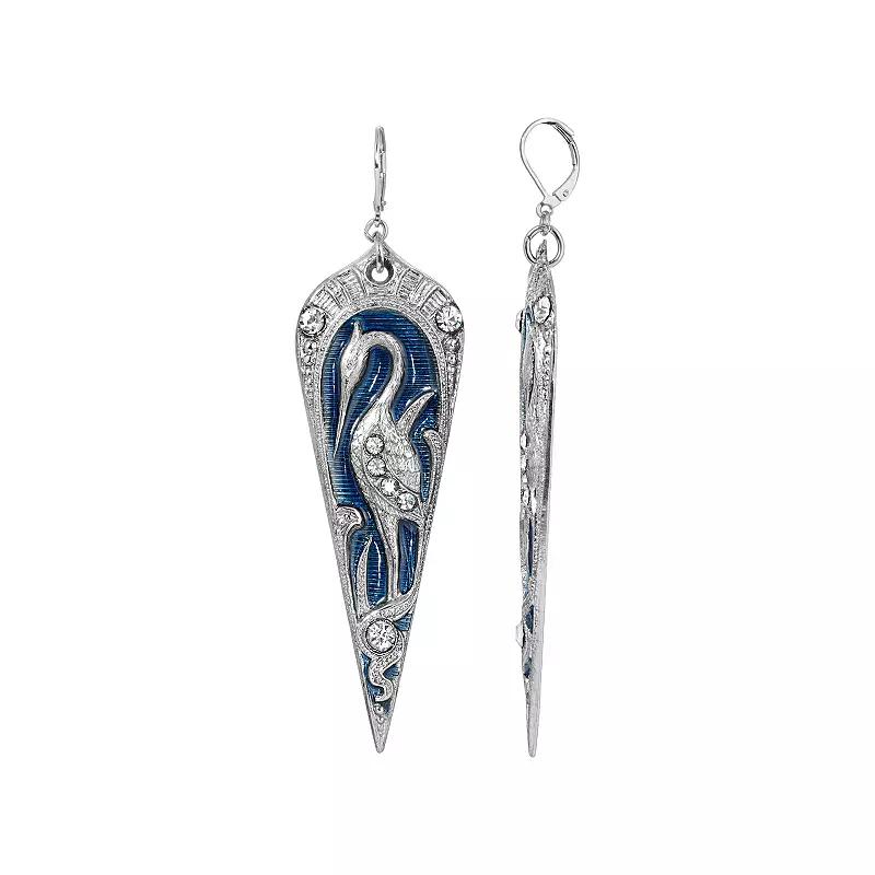 A beautifully designed crane-shaped framework makes these 1928 Silver Tone Blue Enamel Large Crane Earrings one of a kind. A beautifully designed crane-shaped framework makes these 1928 Silver Tone Blue Enamel Large Crane Earrings one of a kind. EARRING DETAILS Length: 3.75 in. Backings: leverback Metal: alloy Plating: silver tone Finish: polished Stone: simulated crystal Not appropriate for children 14 years old and younger. Size: One Size. Gender: female. Age Group: adult.