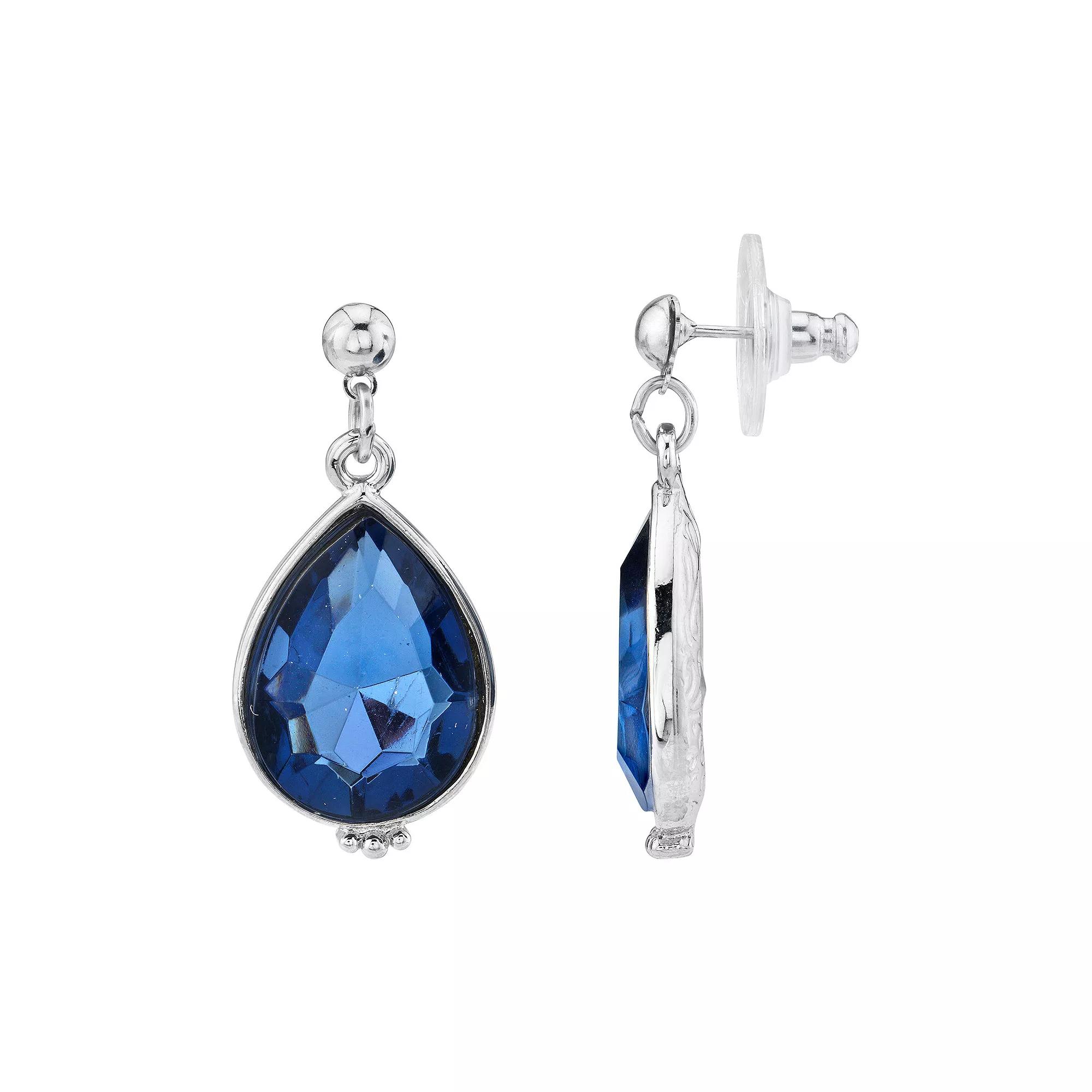 Montana blue faceted pear-shaped stones are encased in silver-tone frames for a stylish set of earrings from 1928, perfect for everyday wear. Slip these on with any outfit for instant style. Montana blue faceted pear-shaped stones are encased in silver-tone frames for a stylish set of earrings from 1928, perfect for everyday wear. Slip these on with any outfit for instant style. EARRING DETAILS Length: 1.2 in. Backings: post Metal: alloy Plating: silver tone Finish: polished Stone: acrylic Size: One Size. Gender: female. Age Group: adult.