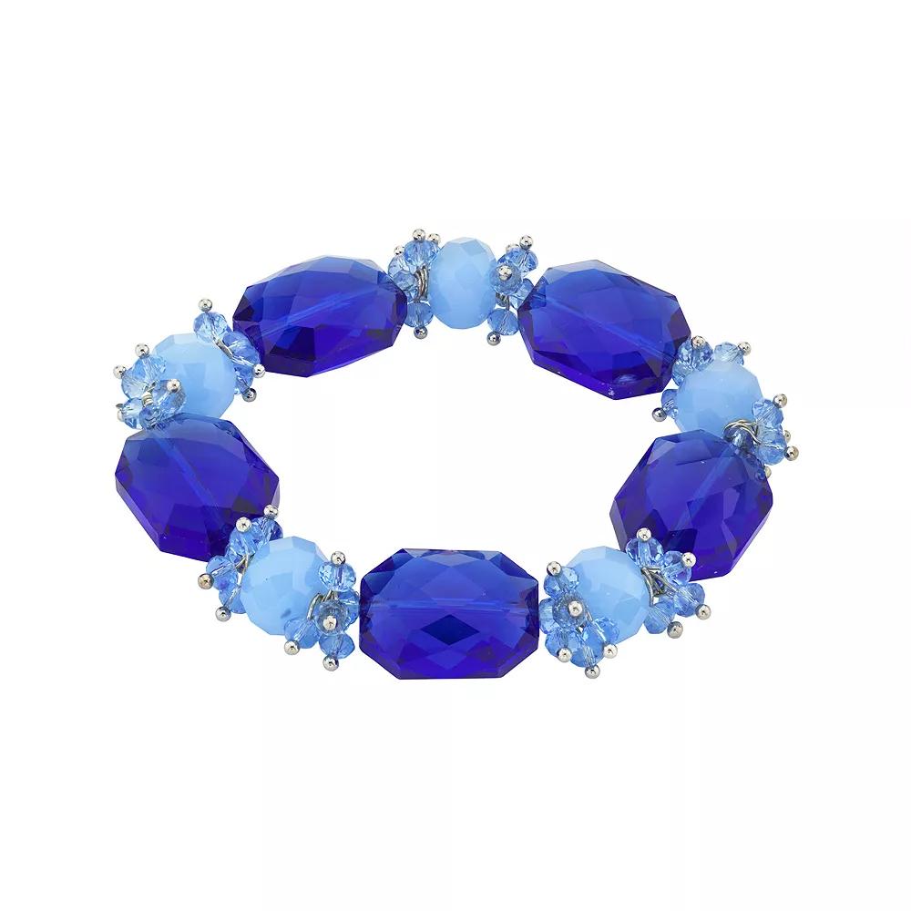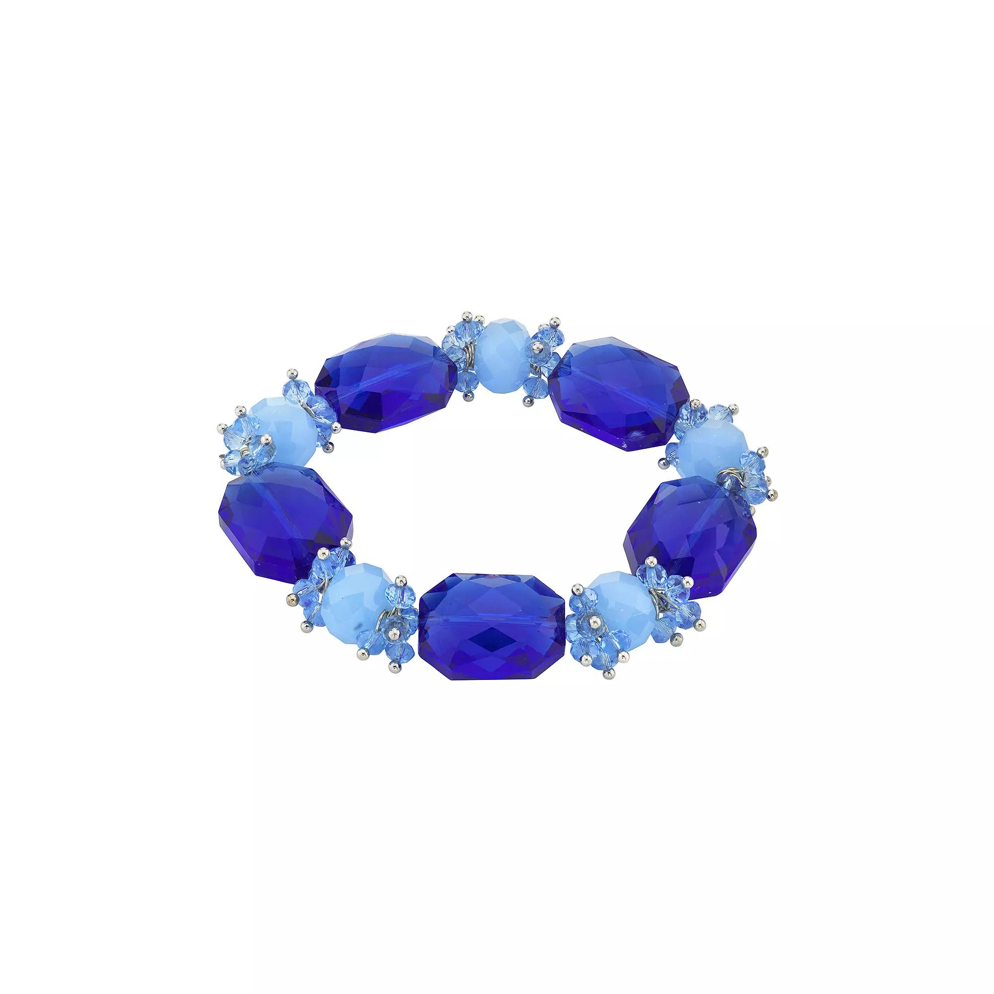 A medley of sapphire color beads with silver-tone accents join together to create this stylish stretch bracelet by 1928 Jewelry to give you a fun and fashionable piece with plenty of sparkles. | 1928 Jewelry Silver Tone Bright Blue Beaded Stretch Bracelet