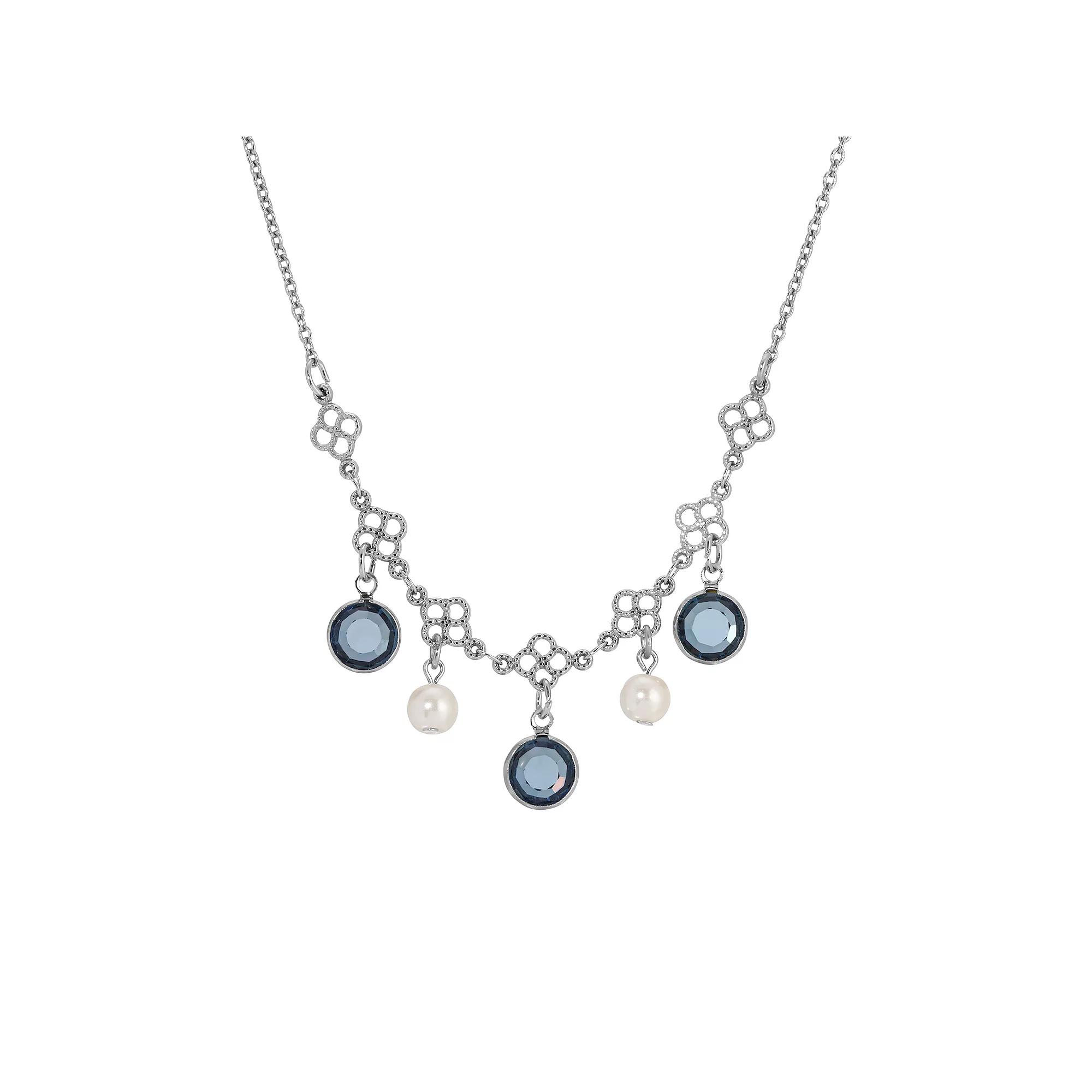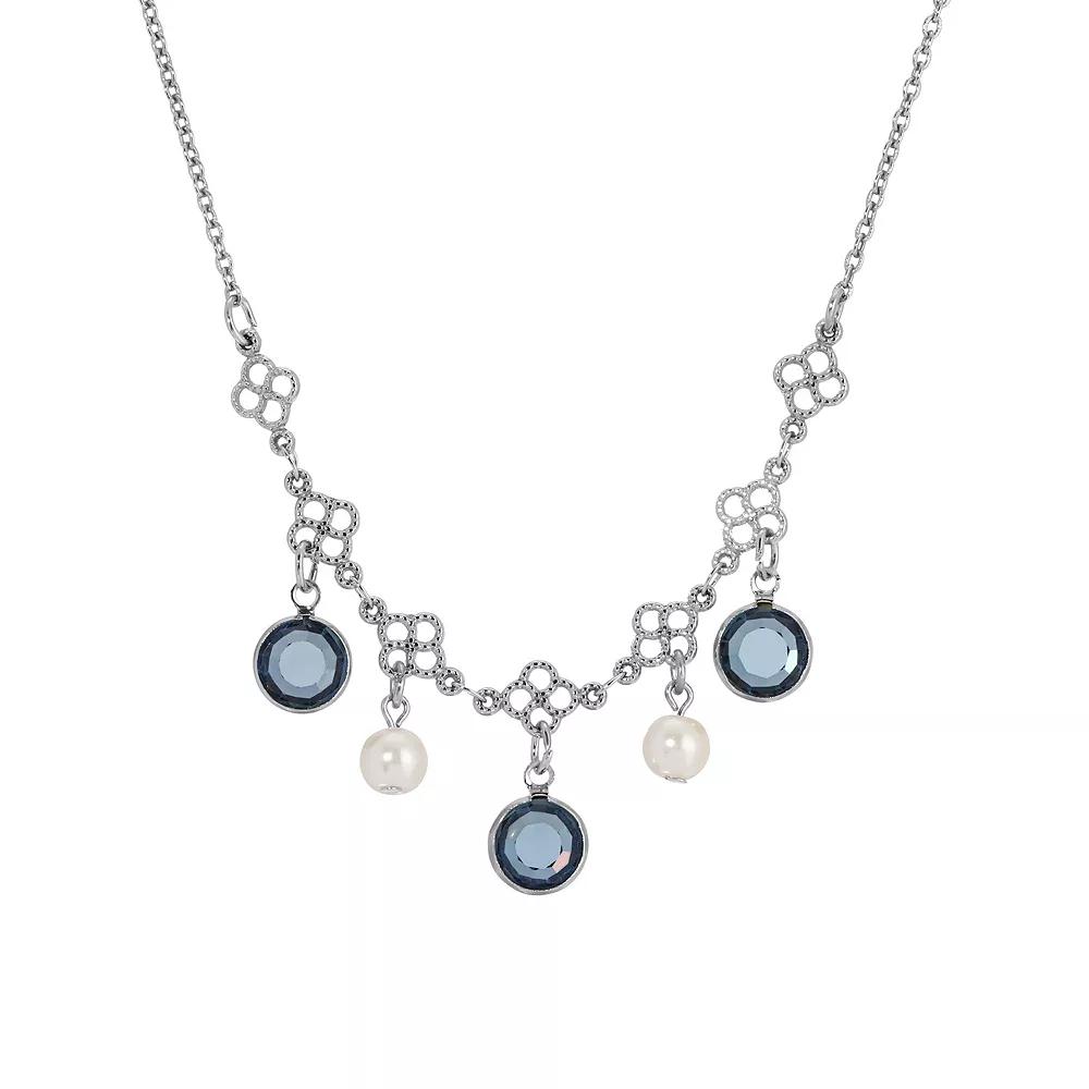 This necklace features intricate flower links and faceted glass crystals paired with 6 mm simulated pearls, creating a sophisticated design. Click on this JEWELRY & WATCHES GUIDE to learn about fit, styles, materials and more! This necklace features intricate flower links and faceted glass crystals paired with 6 mm simulated pearls, creating a sophisticated design. Click on this JEWELRY & WATCHES GUIDE to learn about fit, styles, materials and more! FEATURES Drop length: 0.75 in. Chain length: 16 in. Clasp: lobster-claw Nickel safe Metal: alloy Material: crystal Plating: silver tone Finish: polished Size: One Size. Color: Blue. Gender: female. Age Group: adult.