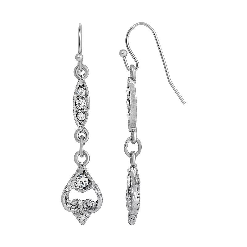 Give your look a cute upgrade with these 1928 Silver Tone Crystal Upside Down Heart Drop Linear Earrings. Click on this JEWELRY & WATCHES GUIDE to learn about fit, styles, materials and more! Give your look a cute upgrade with these 1928 Silver Tone Crystal Upside Down Heart Drop Linear Earrings. Click on this JEWELRY & WATCHES GUIDE to learn about fit, styles, materials and more! FEATURES 44mm x 9mm Backings: fishhook Nickel safe Metal: alloy Material: crystal Plating: silver tone Finish: polished Imported Not appropriate for children 14 years old and younger. Size: One Size. Color: White. Gender: female. Age Group: adult.