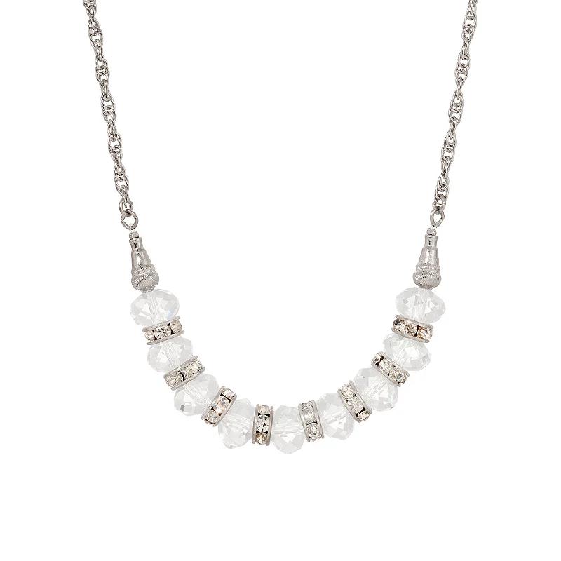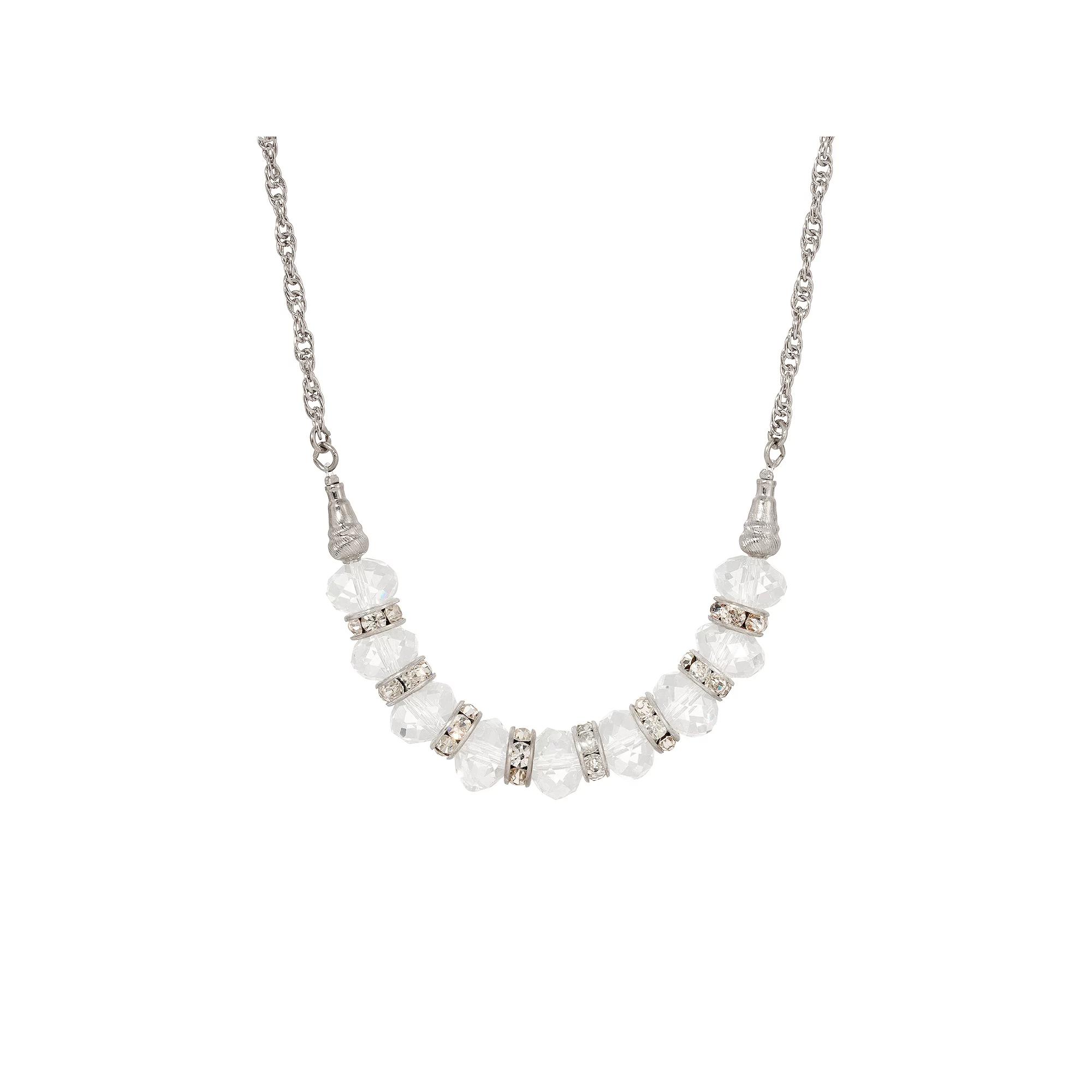 Accessorize in style with this 1928 Silver Tone Faceted Glass Bead Crystal Necklace. Accessorize in style with this 1928 Silver Tone Faceted Glass Bead Crystal Necklace. FEATURES Chain length: 16 in. Clasp: lobster-claw Nickel safe Metal: alloy Material: crystal, glass Plating: silver tone Finish: polished Not appropriate for children 14 years old and younger. Size: One Size. Color: White. Gender: female. Age Group: adult.