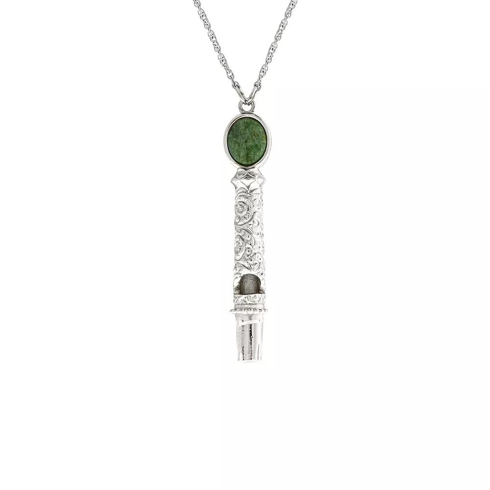 Finish off your look in eye-catching style with this jade-accented silver tone filigree whistle pendant necklace from 1928. Finish off your look in eye-catching style with this jade-accented silver tone filigree whistle pendant necklace from 1928. FEATURES Pendant length: 2.7 in. Chain length: 30 in. Clasp: lobster-claw Metal: alloy Plating: silver tone Finish: polished Material: jade Not appropriate for children 14 years old and younger. Size: One Size. Color: Green. Gender: female. Age Group: adult.