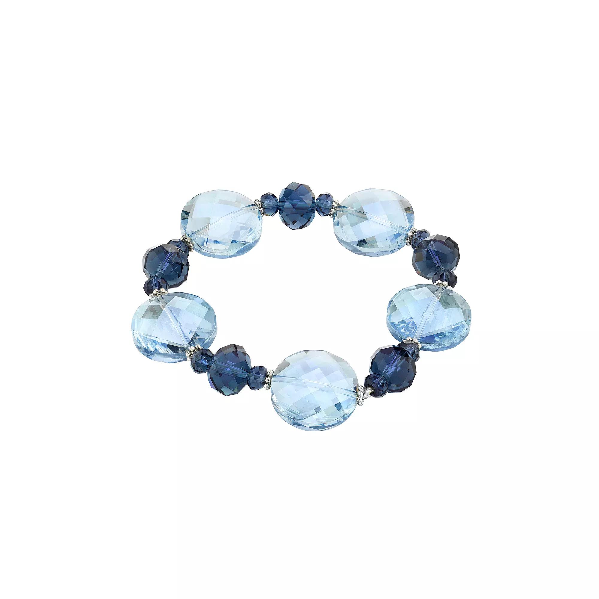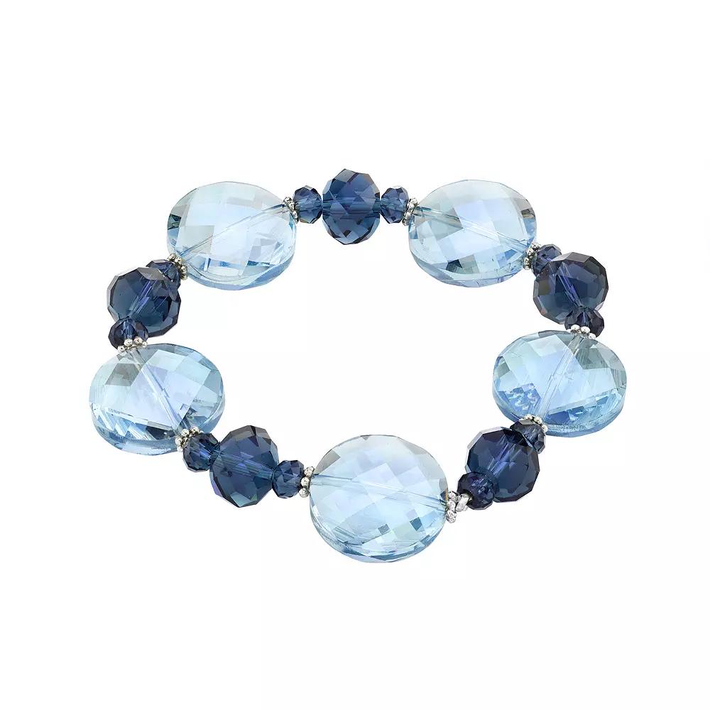 A bold statement or layering piece for any occasion! This silver-tone montana and light grey faceted stretch bracelet, from 1928, is worth becoming a new addition to your accessory wardrobe. A bold statement or layering piece for any occasion! This silver-tone montana and light grey faceted stretch bracelet, from 1928, is worth becoming a new addition to your accessory wardrobe. Bracelet length: 7 in. Metal: alloy Plating: silver tone Finish: polished Stone: acrylic, glass Size: One Size. Color: Black. Gender: female. Age Group: adult.