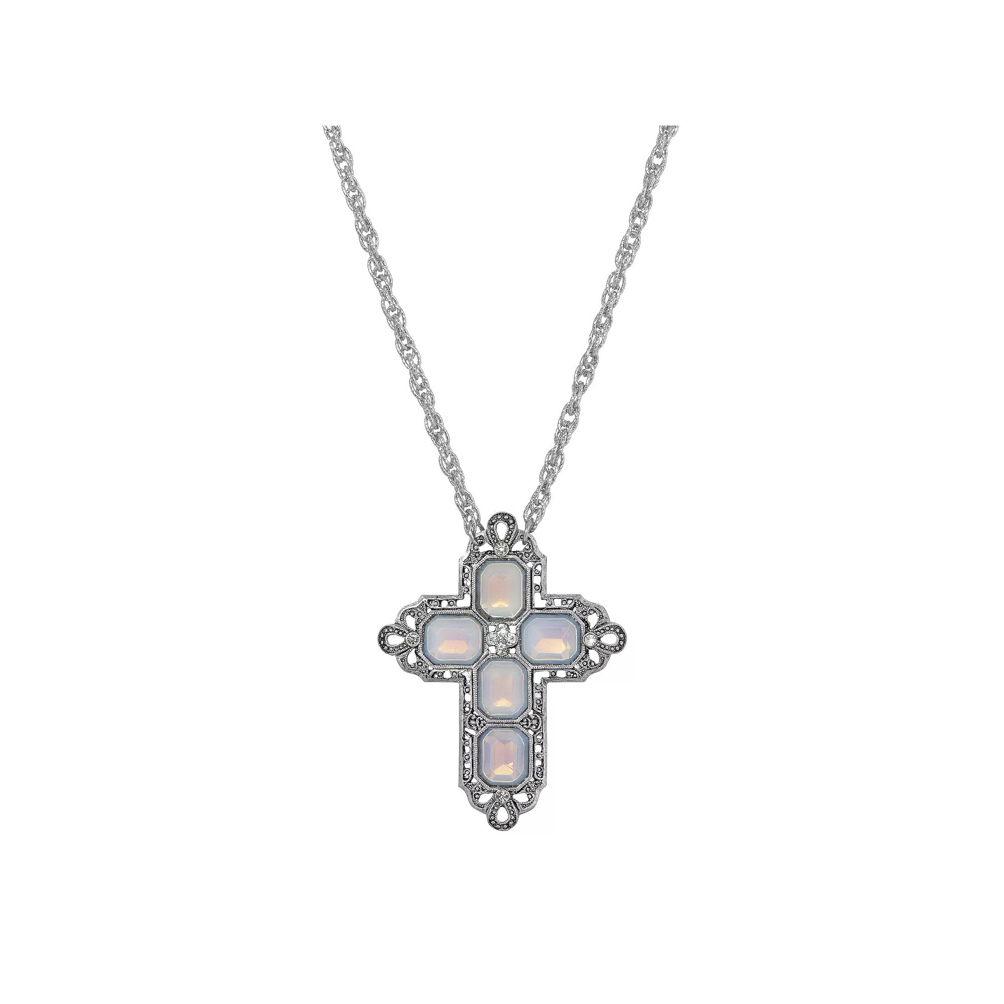 This 1928 Rectangle Simulated Crystal Cross Chain Necklace has a sweet and ornate design. This 1928 Rectangle Simulated Crystal Cross Chain Necklace has a sweet and ornate design. DETAILS Pendant length: 2.5 in. Chain length: 30 in. Clasp: lobster-claw Metal: alloy Plating: silver tone Finish: polished Not appropriate for children 14 years old and younger. Size: One Size. Color: Green. Gender: female. Age Group: adult.