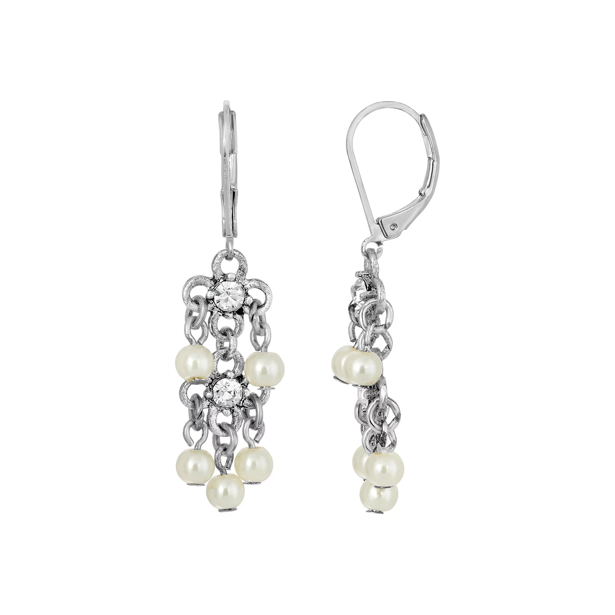 Complete your look with these fun, faux pearl and simulated crystal chandelier earrings. Complete your look with these fun, faux pearl and simulated crystal chandelier earrings. Length: 1.75 in. Backings: leverback Metal: alloy Plating: silver tone Finish: polished Not appropriate for children 14 years old and younger. Size: One Size. Color: White. Gender: female. Age Group: adult. Material: Silver Plate.