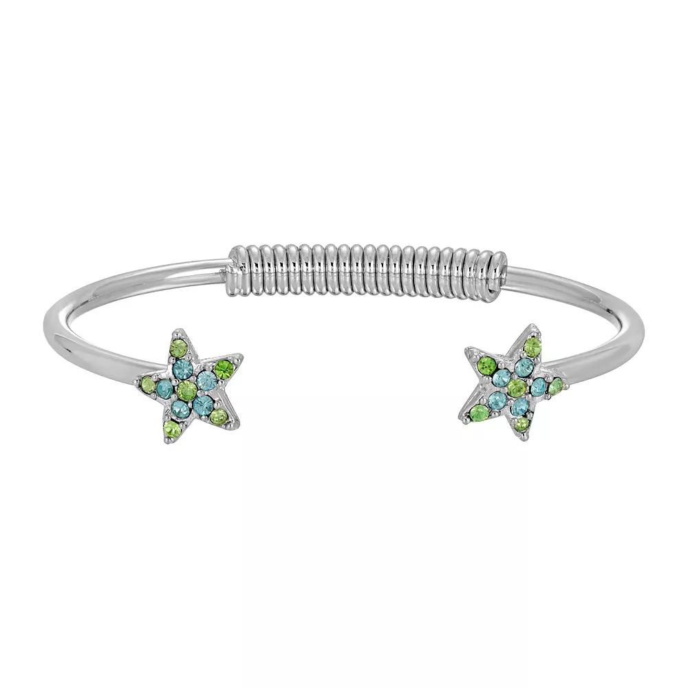 Show honor to one of the most important celestial objects in the night sky with this 1928 Silver Tone Simulated Crystal Star Spring Bracelet. Show honor to one of the most important celestial objects in the night sky with this 1928 Silver Tone Simulated Crystal Star Spring Bracelet. BRACELET DETAILS Length: 7.25 in. Metal: alloy Plating: silver tone Finish: polished Stone: simulated crystal Not appropriate for children 14 years old and younger. Size: One Size. Color: Blue. Gender: female. Age Group: adult.