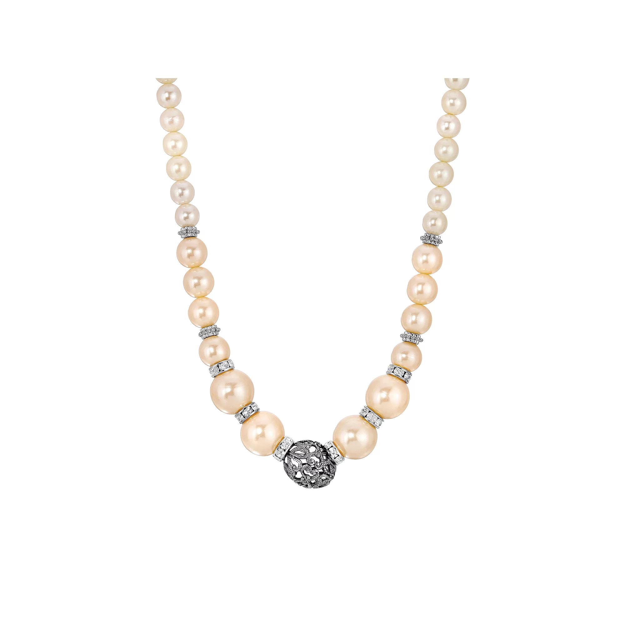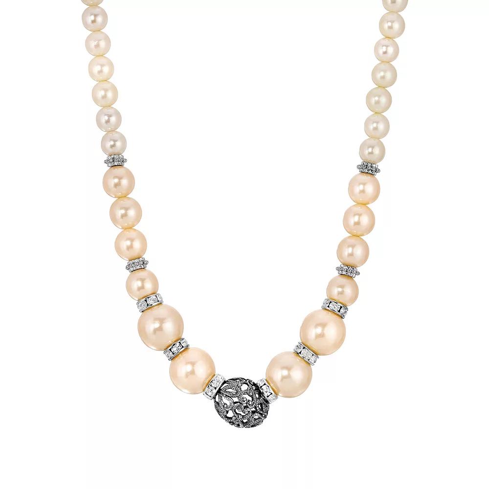 Featuring rows of graduated simulated pearls meeting at an intricate oval filigree bead, this 1928 necklace effortlessly complements your favorite outfits. Featuring rows of graduated simulated pearls meeting at an intricate oval filigree bead, this 1928 necklace effortlessly complements your favorite outfits. FEATURES Chain length: 15 in. + 3-in. extender Clasp: lobster-claw Metal: alloy Material: acrylic, crystal Plating: silver tone Finish: polished Size: One Size. Color: Grey. Gender: female. Age Group: adult.